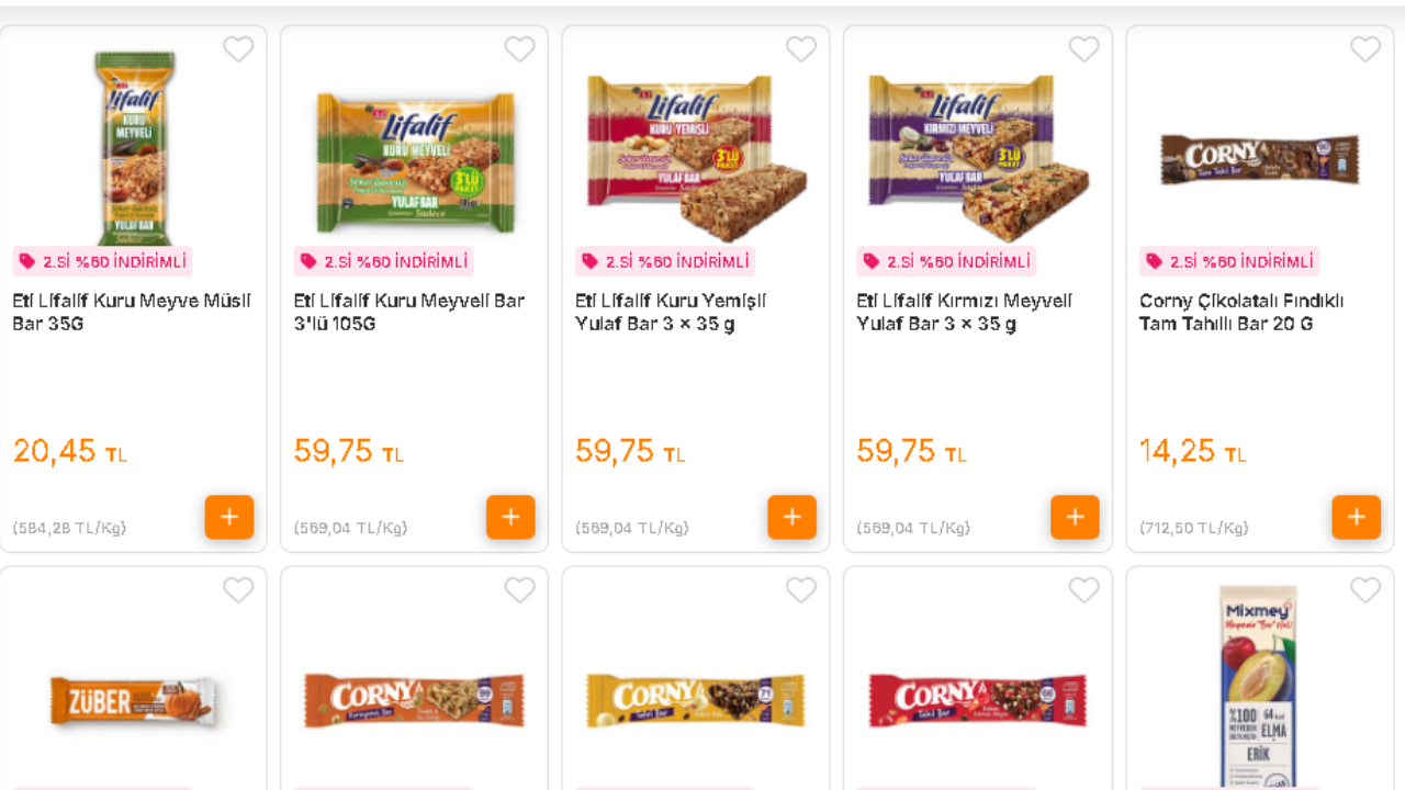 14-17 Kasım tarihleri arasında tahıl ve meyve barlarında aynı ürünün 2.sinde %60 indirim uygulanacaktır. Kampanyadan faydalanabilmek için sepete aynı üründen en az 2 adet ürün eklenmesi gerekmektedir.