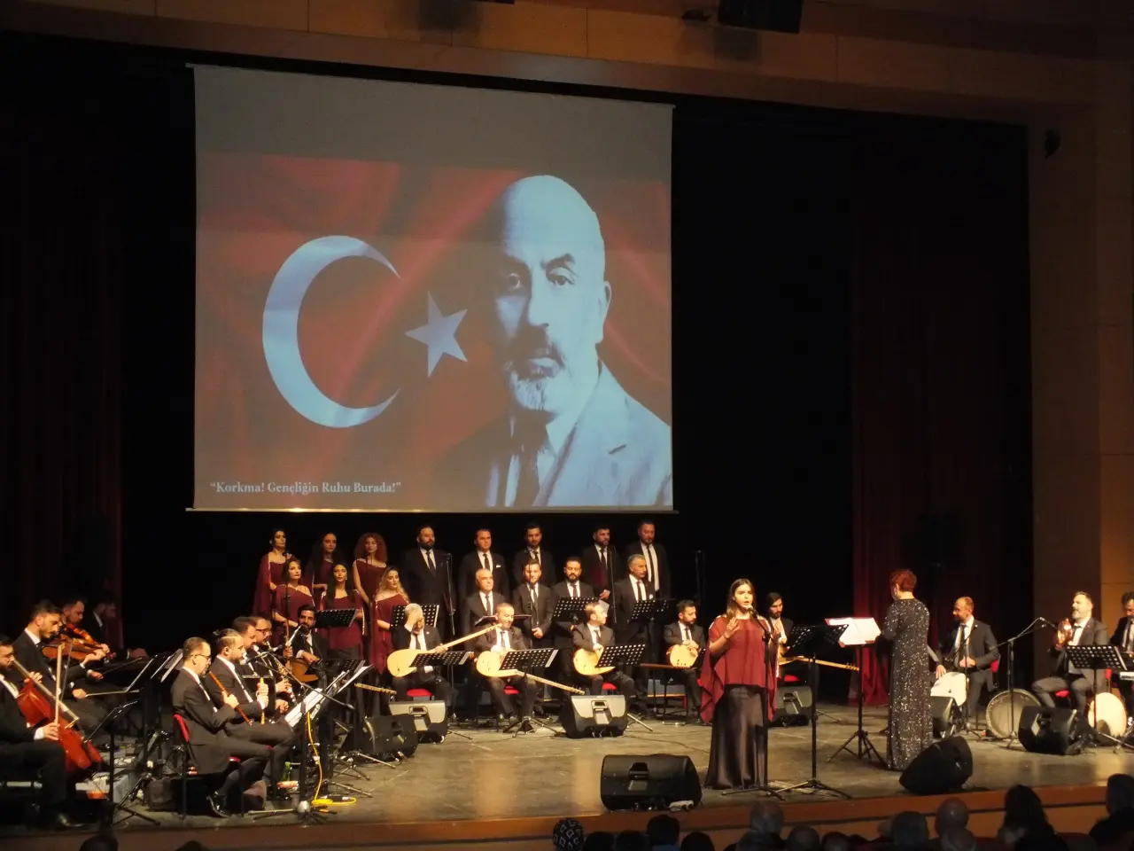 Şef Solmaz Kadıoğlu yönetimindeki dev koro, sahneye çıktığı andan itibaren salondaki atmosferi tamamen değiştirdi. Anadolu'nun dört bir yanından derlenen, sevdayı, hasreti ve vatan sevgisini anlatan en özel türküler, bu kez Milli Şairimiz Mehmet Akif Ersoy’un aziz hatırası için seslendirildi. Koro sanatçılarının gerek solo performansları gerekse koro olarak sergiledikleri kusursuz uyum, dinleyicilere adeta bir müzik ziyafeti sundu. Türkülerin arasına serpiştirilen milli duygular, Sivas halkına duygu dolu anlar yaşattı.