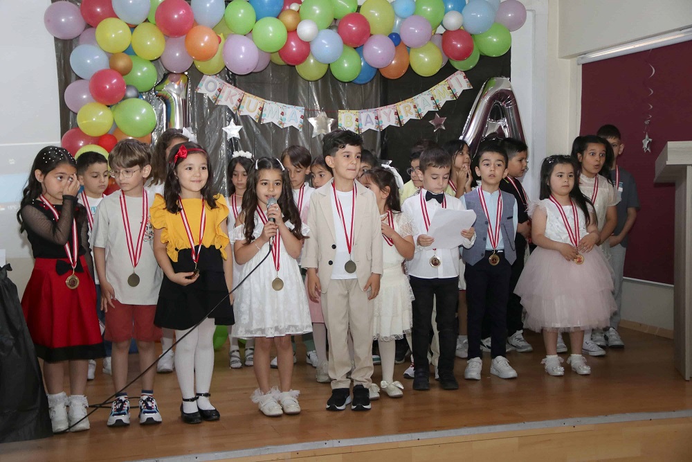 Konuşmasının sonunda etkinliğin düzenlenmesinde emeği geçen fedakâr öğretmenlere teşekkürlerini sunan Fatih Erdoğan, daha sonra 1/A sınıfı öğrencilerinin heyecanla beklediği ana geçerek onlara "okuma madalyalarını" takdim etti. Miniklerin yüzlerindeki mutluluk görülmeye değerdi.