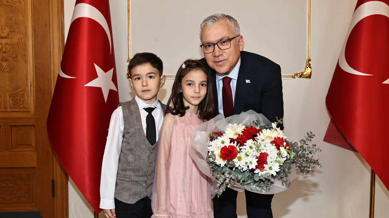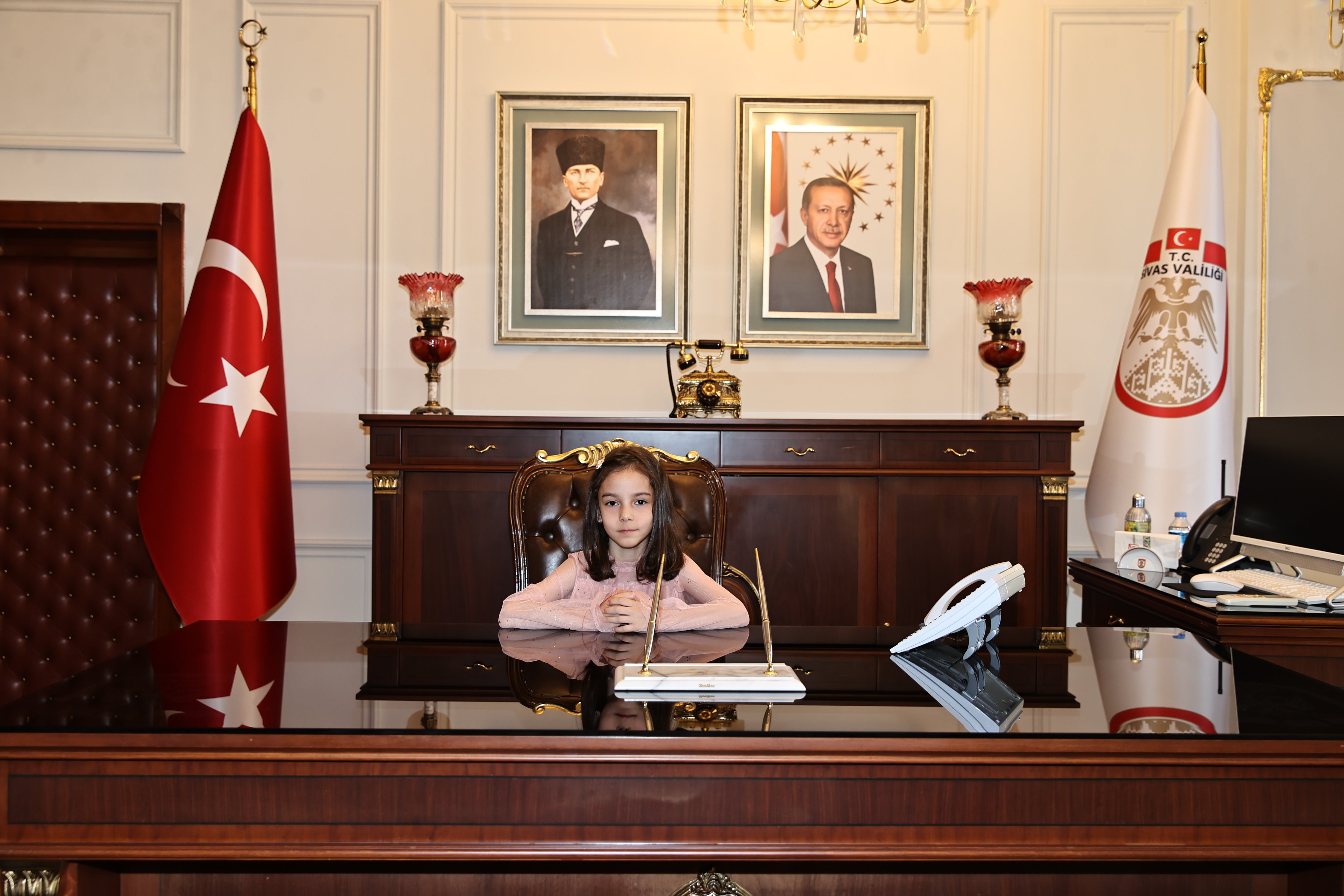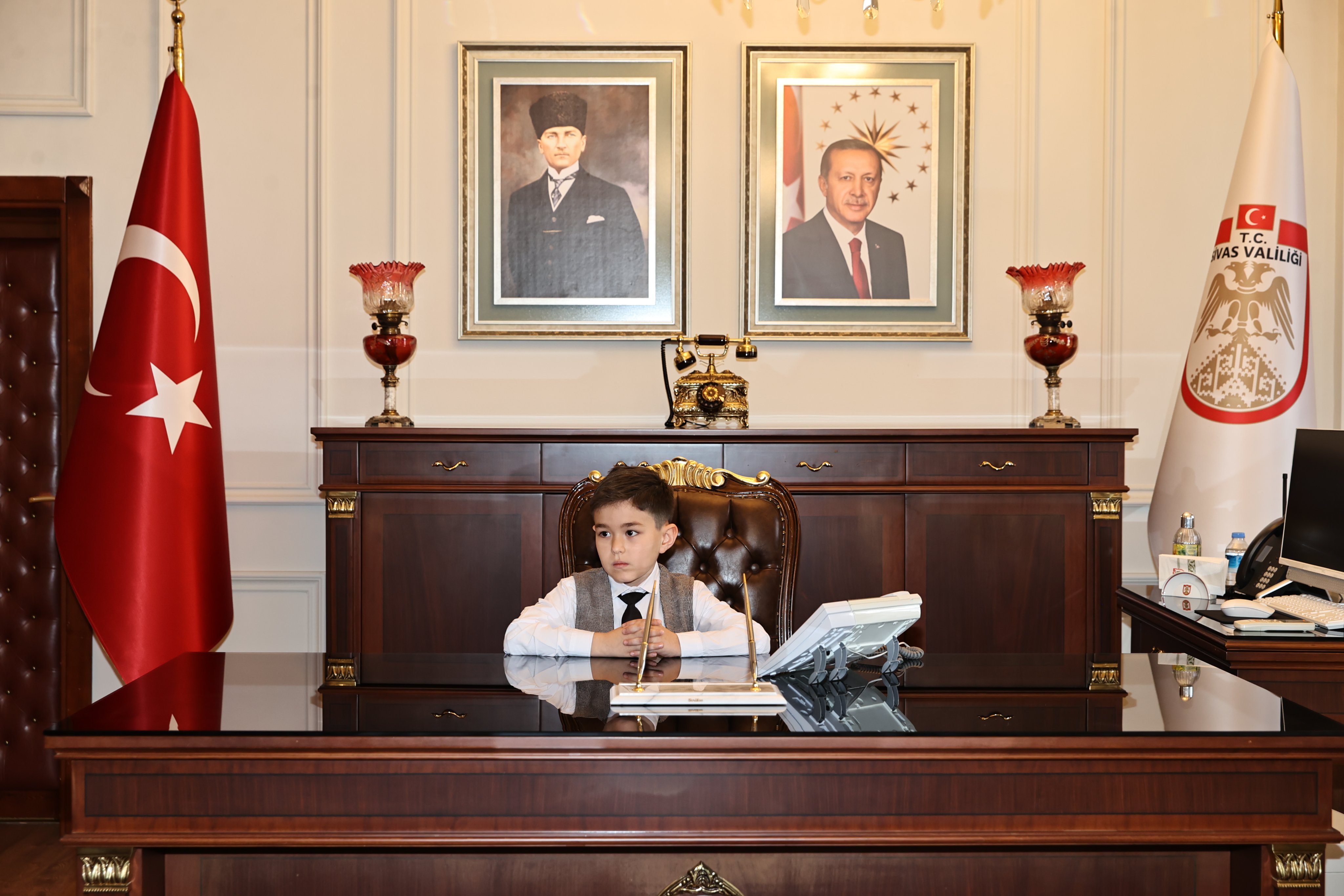23 Nisan Ulusal Egemenlik ve Çocuk Bayramı'nın 105. yılı dolayısıyla Sivas Valisi Yılmaz Şimşek, İl Milli Eğitim Müdürü Fatih Erdoğan, Şehit Hakan Yurtoğlu İlkokulu Müdürü Nihat Koç, öğretmenler ve öğrencileri makamında ağırladı.