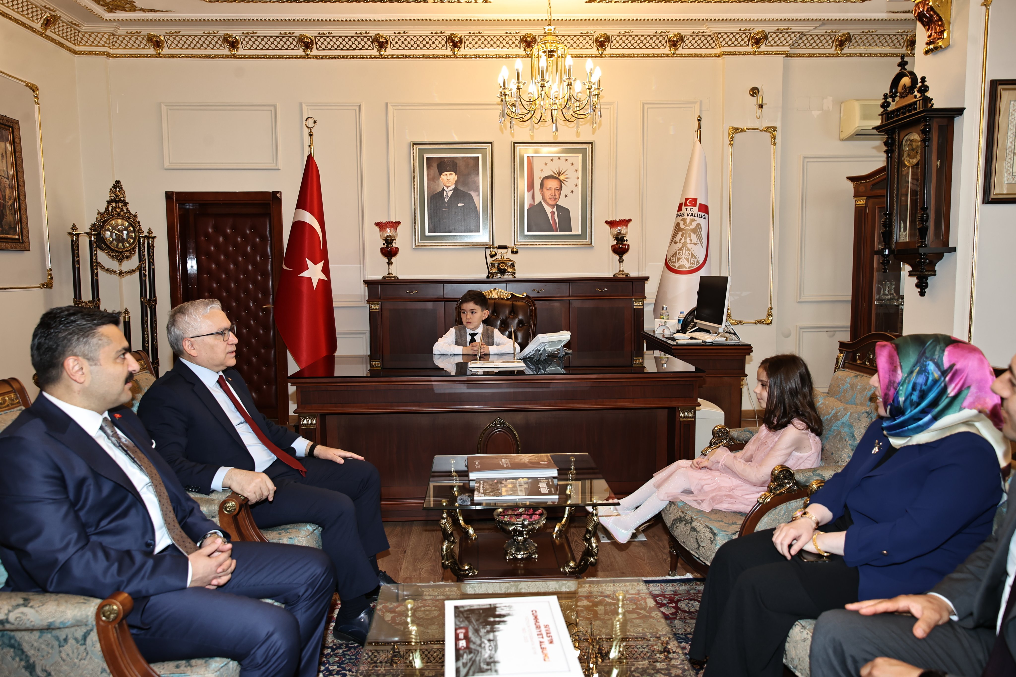 Ziyaret kapsamında Şehit Hakan Yurtoğlu İlkokulu 2. sınıf öğrencileri Ravza Hüma Özdem ve Raif Asaf Çelik, temsili olarak valilik görevini üstlendi.