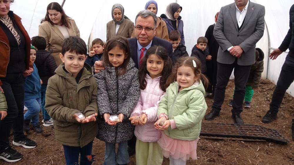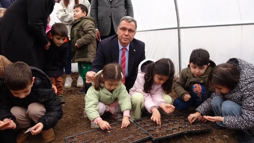 Öğrenciler, öğretmenleri eşliğinde anaokulu bahçesinde kurulan serada patlıcan, domates, dolmalık biber gibi pek çok çeşitteki ata tohumunu toprağa ekti. Meraklı gözlerle tohumları inceleyen ve tohumun yetişme süreci hakkında öğretmenlerini dinleyen minikler üretimin başlangıç aşamasını öğrendi.