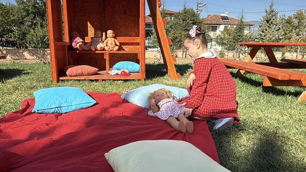 Bahçeye kurulan alanlarda mutfak eşyaları, ev gereçleri ve çeşitli materyaller yer alıyor. Çocuklar bu nesneleri oynayarak tanıyor, kullanım alanlarını deneyimleyerek öğreniyor. Bu sayede eğitim süreci hem daha kalıcı hem de daha eğlenceli hale geliyor.