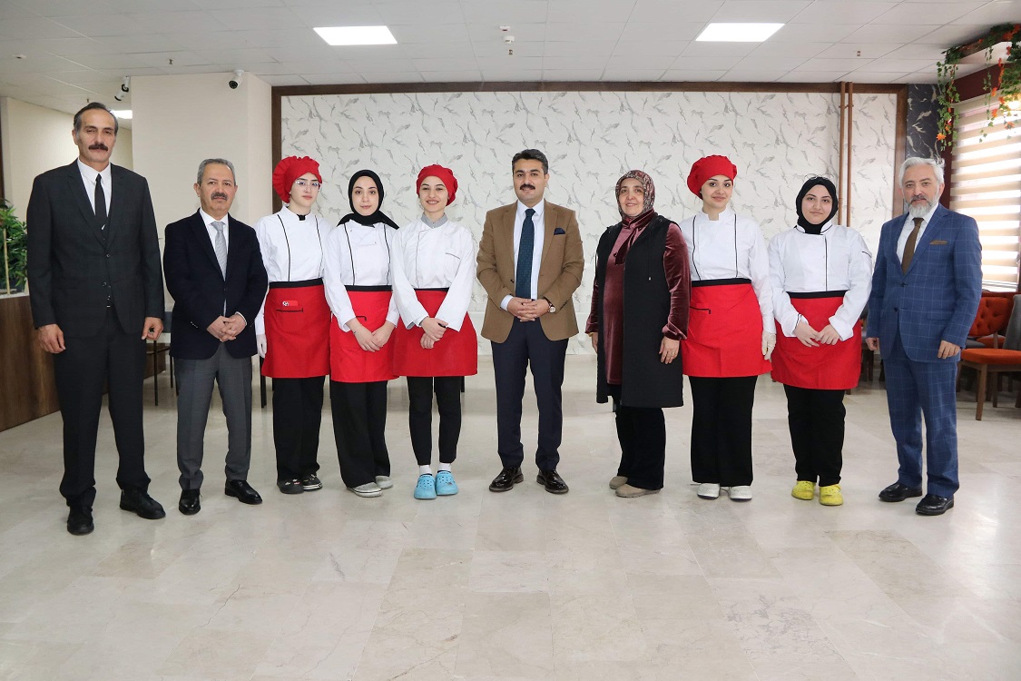 Millî Eğitim Müdürü Fatih Erdoğan, Gültepe Mahallesi okullar bölgesinde bulunan okulların idarecileri ile toplantıda bir araya geldi. Necip Fazıl Kısakürek Kız MTAL bünyesinde hizmet veren HEDEF Lezzet Atölyesinde gerçekleştirilen toplantıya birim amirlerimiz de katıldı. Bir süre okul müdürleri ile sohbet eden Erdoğan, görüş, öneri ve talepleri dinledi.
