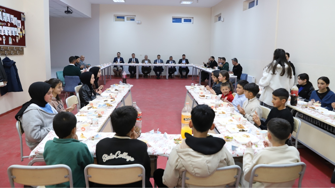 Yıldızeli Sarıyar Ortaokulu’nda düzenlenen iftar programına katılan Fatih Erdoğan, İlçe Milli Eğitim Müdürü Erdal Karadağ, Yıldızeli İl Genel Meclisi Üyeleri Mahmut Yılmaz ve Mustafa Deveci, okul idarecileri, öğretmenler ve LGS'ye hazırlanan 8. sınıf öğrencileriyle bir araya geldi.