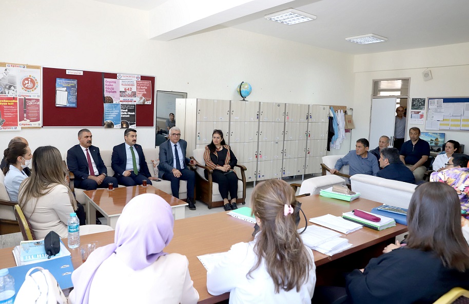 Öğretmenlerin görüş ve önerilerini dinleyen Erdoğan, daha sonra elektrik-elektronik teknolojileri atölyesini ziyaret etti. Öğrencilerle sohbet ederek yaptıkları çalışmalar hakkında bilgi alan Erdoğan, "Eğitim hayatınızda edineceğiniz bilgi ve tecrübeler hem kendi geleceğiniz hem de ülkemizin geleceği açısından çok önemli. O nedenle har anın kıymetini bilerek, emek vererek kendinizi en iyi şekilde yetiştirmenizi arzuluyoruz" dedi.