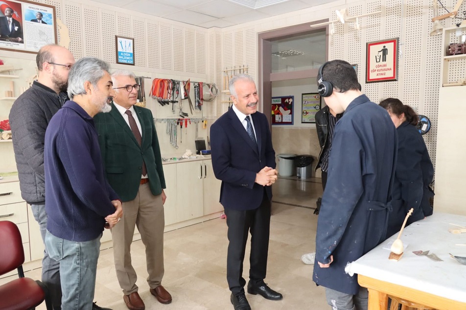 Okulda yürütülen proje ve çalışmalar ile ilgili idarecilerden bilgi alan Yener, atölyelerde ders işleyen öğrencileri ziyaret ederek bir süre sohbet etti.