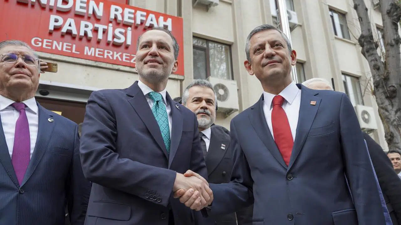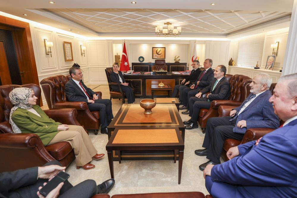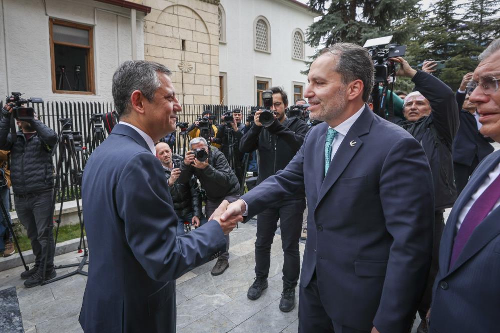 CHP Genel Başkanı Özgür Özel, Yeniden Refah Partisi Genel Başkanı Fatih Erbakan'ı parti genel merkezinde ziyaret etti. Özel'e ziyaretinde CHP Genel Sekreteri Selin Sayek Böke ile Genel Başkan yardımcıları Ensar Aytekin ve Sevgi Kılıç eşlik etti. Ziyaretin ardından Özel ve Erbakan, basın mensuplarına açıklamalarda bulundu.