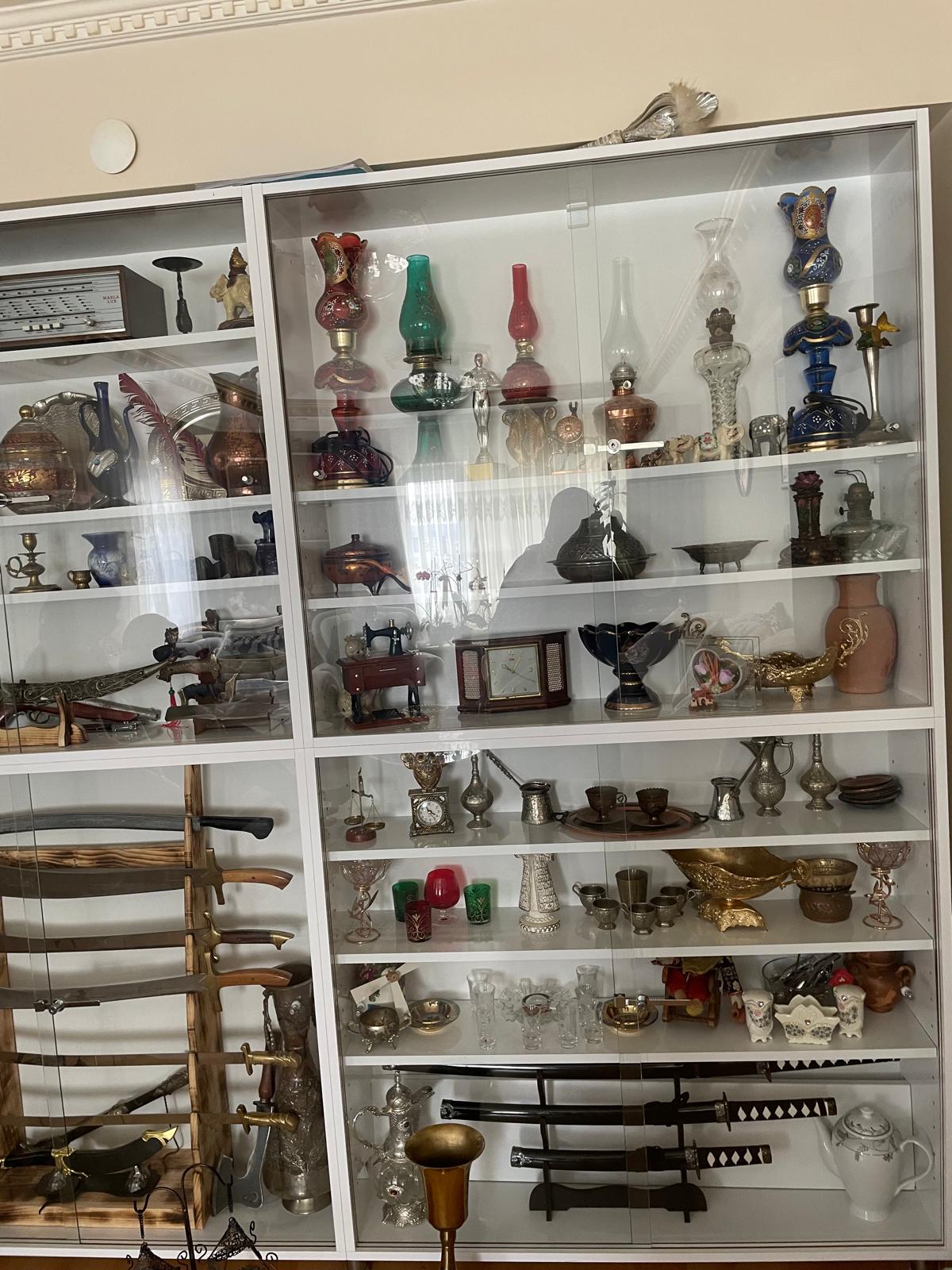 Yaman’ın evinde oluşturduğu koleksiyon köşesinde tespihlerden gümüş kaselere, plaktan pikaba, antika eşyalardan çeşitli dönemlere ait kılıçlara kadar birçok değerli obje yer alıyor.