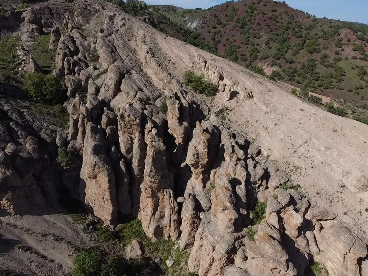 Gümüşdiğin köyüne sadece 500 metre mesafede yer alan bu ilginç jeolojik yapılar, rüzgar ve erozyonun milyonlarca yıllık sanatsal dokunuşlarıyla şekillenmiş gibi duruyor. Tepelere dikkatli bakıldığında deve, kaplumbağa, uyuyan bir çocuk ve daha birçok farklı hayvan figürünü andıran silüetler seçilebiliyor. Bu benzersiz oluşumların bilimsel olarak incelenmesi ve jeolojik süreçlerinin aydınlatılması durumunda, bölgenin tıpkı Nevşehir gibi yerli ve yabancı turistlerin akınına uğrayacağı düşünülüyor.