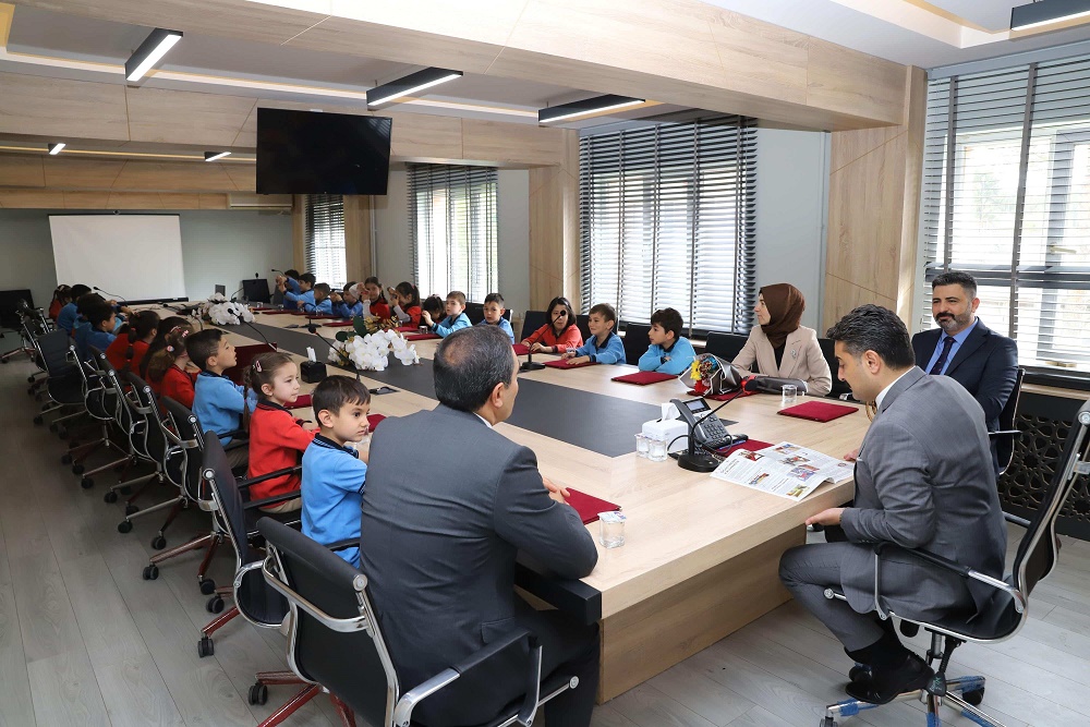 Millî Eğitim Müdürü Fatih Erdoğan, Şehit Hakan Yurtoğlu İlkokulu 1/F sınıfı öğrencilerini ve onlara rehberlik eden sınıf öğretmenleri Mehtap Herdem Akgül'ü makamında ağırladı. Miniklerin kendisine hediye ettiği "Kardelen" gazetesini büyük bir ilgi ve beğeniyle inceleyen Erdoğan, ziyaretten duyduğu memnuniyeti dile getirdi.