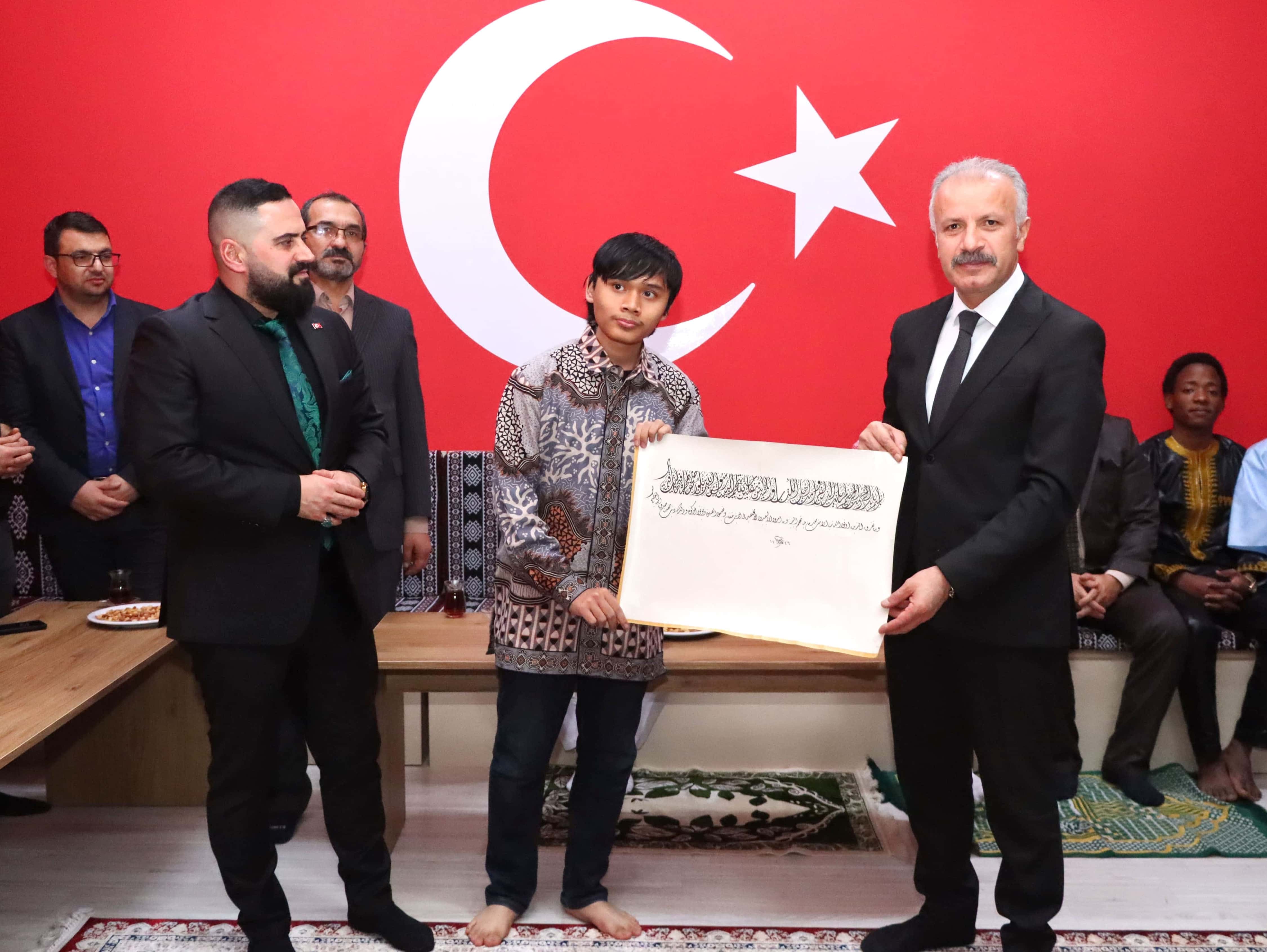 Sivas'ta, Endonezyalı öğrenciler geleneksel Türk hat sanatına olan ilgilerini sürdürüyor. Haftanın pazar günleri, Birlik Vakfı'nda düzenlenen hat kurslarına katılan öğrenciler, usta hattat Ali Karaca'nın derslerinden faydalanıyor. Bu öğrencilerden biri olan Uluslararası Şehit Murat Ertekin AİHL 10. sınıf öğrencisi Muhammed Naufal, hat sanatına olan ilgisini ve sevgisini dile getirerek, hattat Ali Karaca'dan aldığı eğitim sonrası yazdığı hat yazısını Sivas Milli Eğitim Müdürü Necati Yener'e hediye etti.