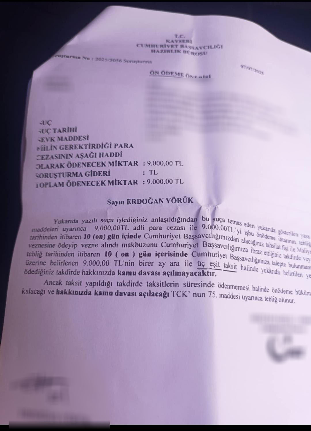 Her şey, Sivaslı Erdoğan Yörük'ün bir sosyal medya platformunda Kayserispor eski Başkanı Ali Çamlı'ya yaptığı bir yorumla başladı. Yorumu hakaret olarak kabul eden Çamlı, konuyu yargıya taşıyarak Yörük hakkında dava açtı. Süreçten habersiz olan Yörük, hakkında yakalama kararı çıkarıldığını öğrendiğinde büyük bir şok yaşadı. Adli makamlarca hakkında verilen 9 bin TL'lik para cezasını ödemek zorunda kalan Yörük, yaşadığı bu acı tecrübenin ardından tüm taraftarlara seslendi.
