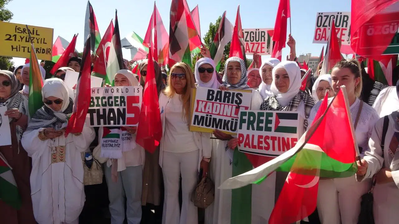 "Bugün bütün kimliklerimizden sıyrılarak, sadece kadın kimliğimizle buradayız. Slogan atmıyoruz, vicdanlarımızla haykırıyoruz. Çünkü bazı sessizlikler vardır ki, arşı yere indirir ve bizim sessizliğimiz, Gazze'nin en gür çığlığı olacaktır."