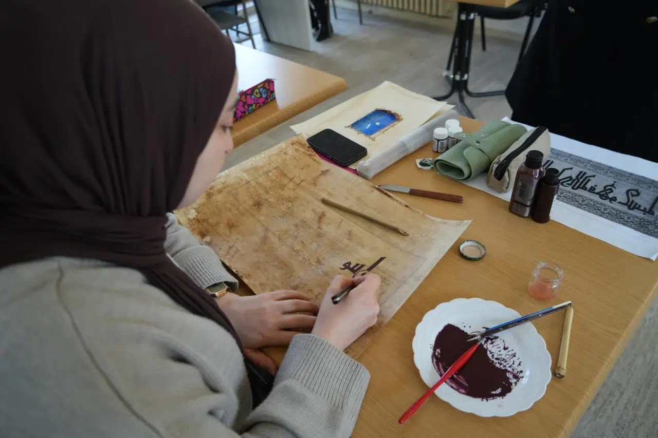 Kendileri için güzel bir aktivite olmuş oluyor. Hem de bu güzel geleneksel Türk İslam Sanatlarının baş tacı olan Hüsn-i Hat sanatının inceliklerini öğreniyorlar" şeklinde konuştu.