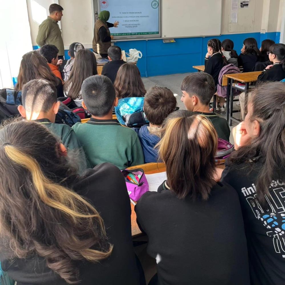 Bu kapsamda, Kayseri Doğa Koruma ve Milli Parklar Müdürlüğü Pınarbaşı Şefliği personeli tarafından Pınarbaşı Hasan Tahsin Önalp Ortaokulu'nda öğrencilere 'Tabiatı Koruma, Biyoçeşitliliğin Önemi ve Biyokaçakçılık" konulu bir eğitim düzenlendi.