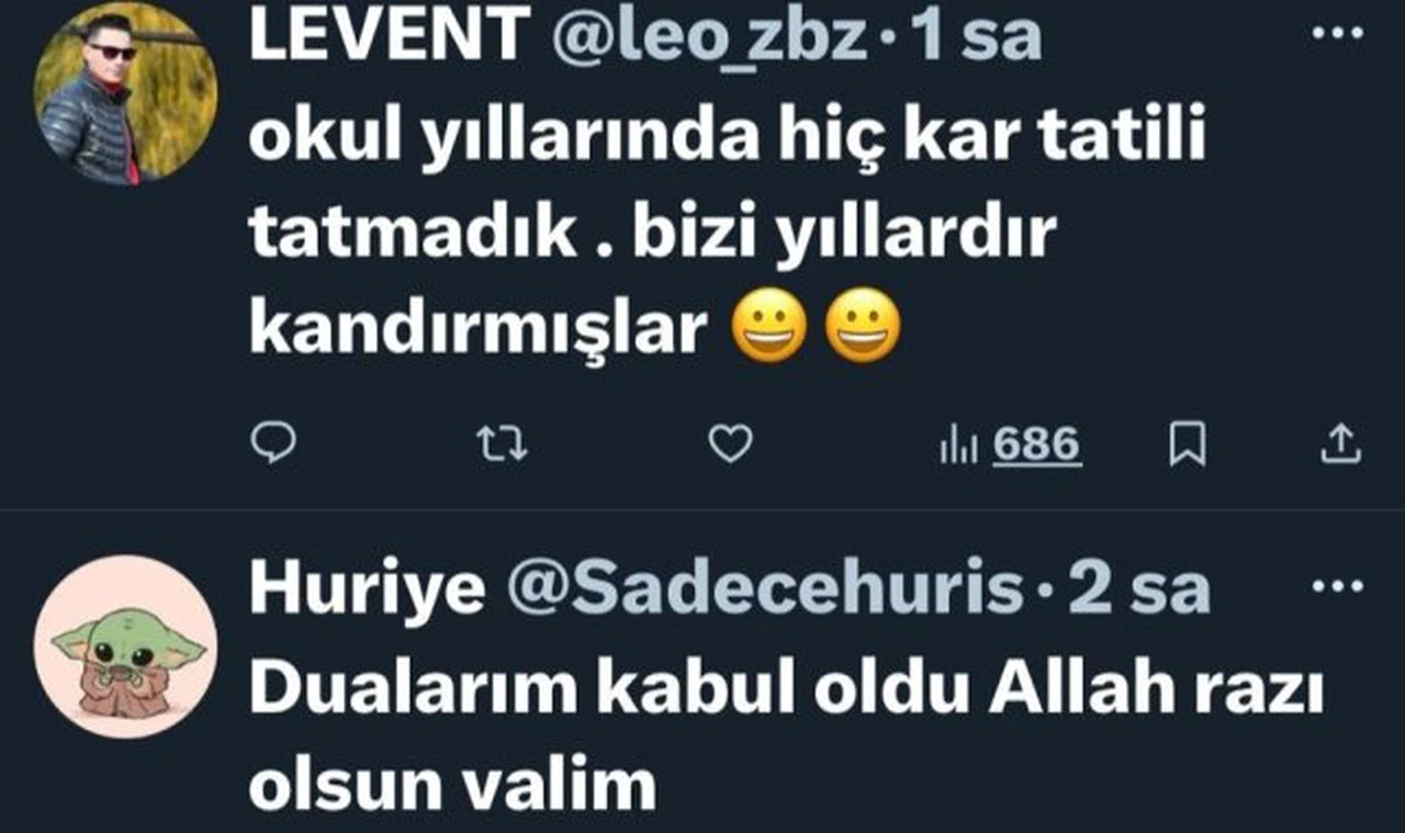 Yoğun kar nedeniyle okulların 1 gün tatil edildiği Kayseri'de öğrencilerin Vali Gökmen Çiçek'in paylaşımının altına yaptığı yorumlar güldürdü.