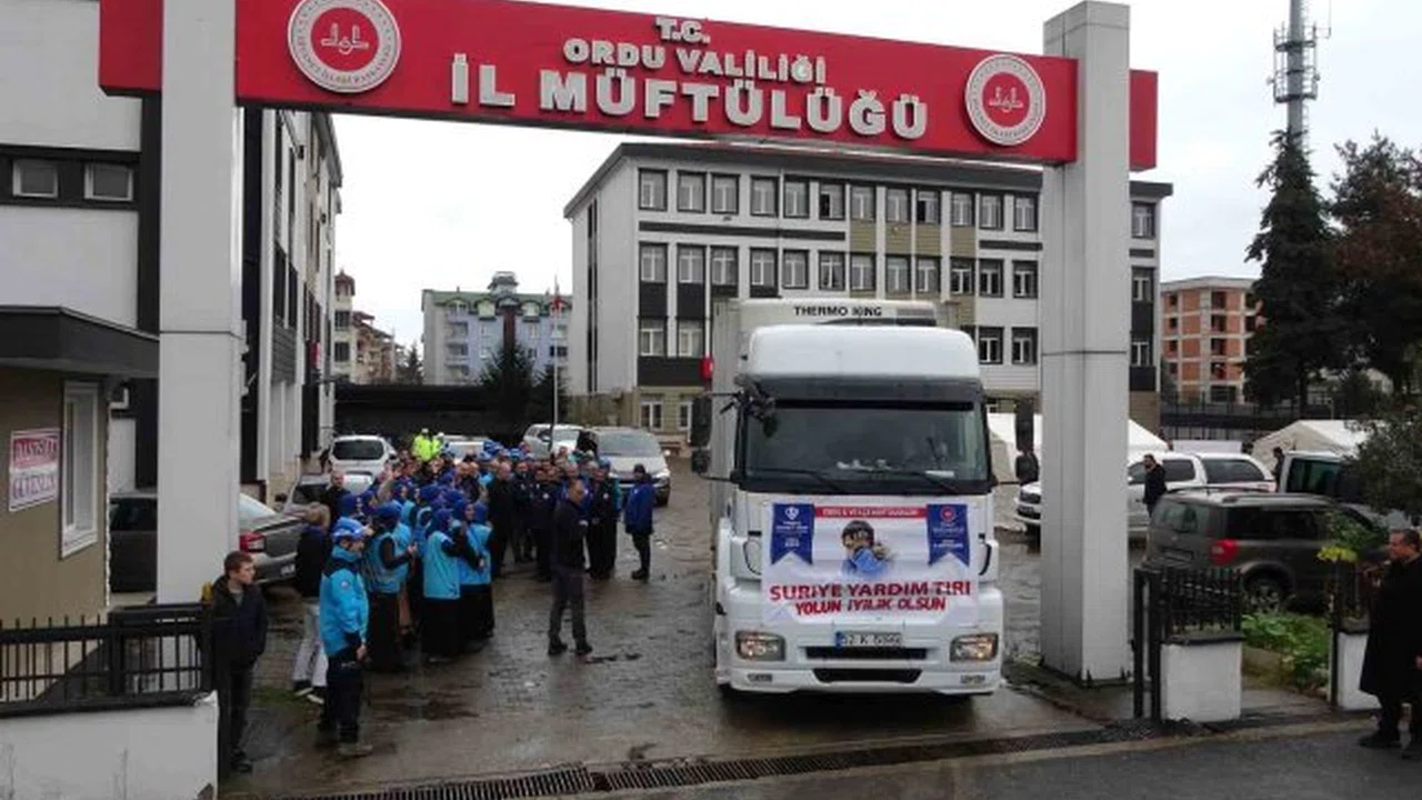 Ordu İl Müftülüğü ve Diyanet İşleri Başkanlığı Türk Diyanet Vakfı Ordu Şubesi'nin iş birliğiyle düzenlenen 'Halep'te İnsanlık Ölmesin' kampanyası kapsamında temin edilen gıda maddelerinden oluşan 4 tır insani malzemesi, Suriye'ye gönderildi.
