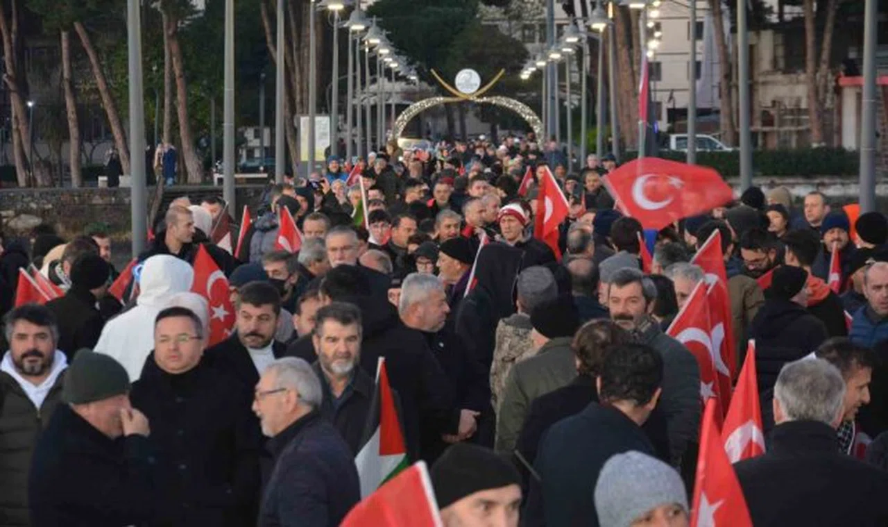 Ordu'nun Ünye ilçesinde vatandaşlar, yeni yılın il gününde Gazze'deki Müslümanlar için bir araya geldi.