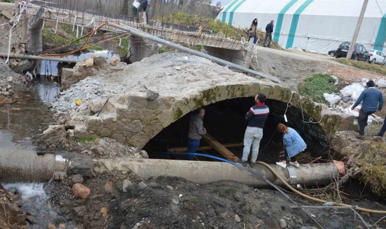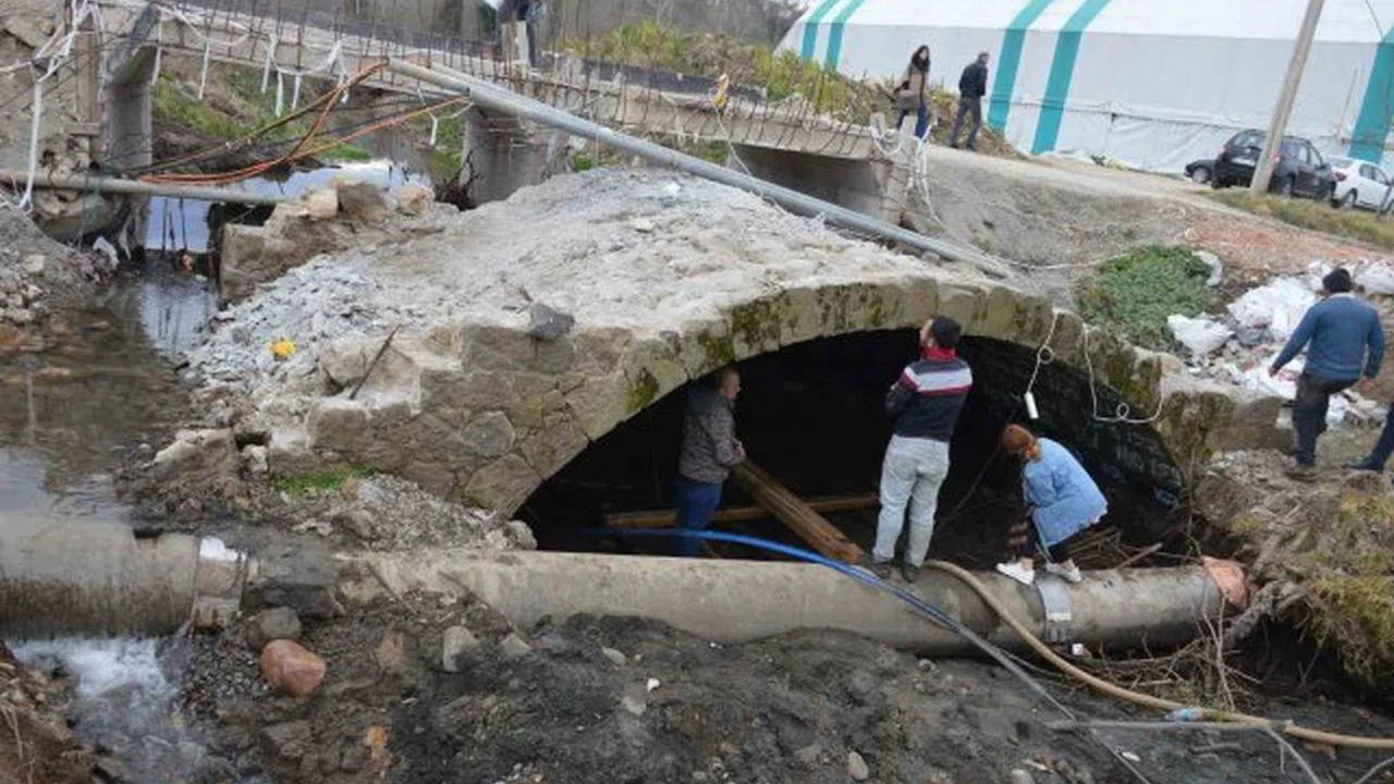 Ordu'nun Ünye ilçesinin Gölevi Mahallesi'nde yürütülen yol çalışmaları sırasında bulunan kesme taş köprü restore edilecek.