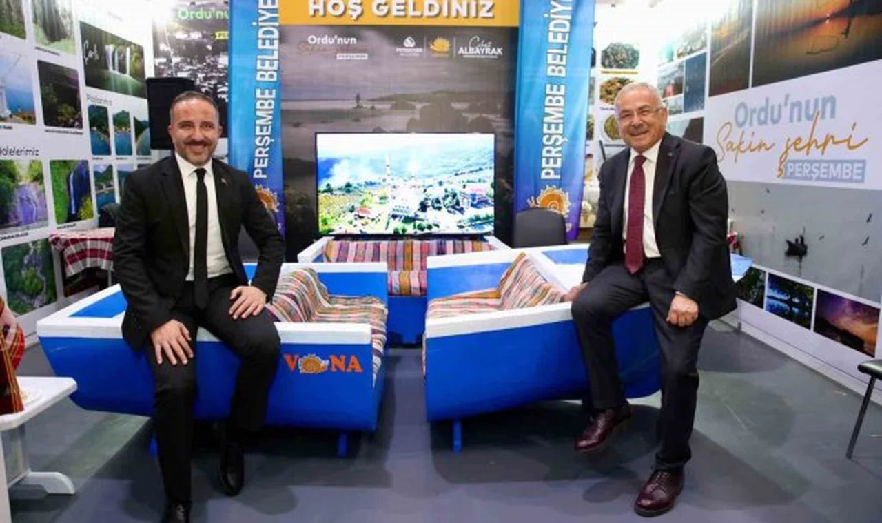 Ordu Büyükşehir Belediye Başkanı Dr. Mehmet Hilmi Güler beraberindeki heyet ile Perşembe standını ziyaret etti. Perşembe ilçesini simgeleyen 'Vona' isimli tekne maketinde Başkan Albayrak ile fotoğraf çektiren Başkan Güler, Albayrak'a çalışmalarında başarılar diledi.