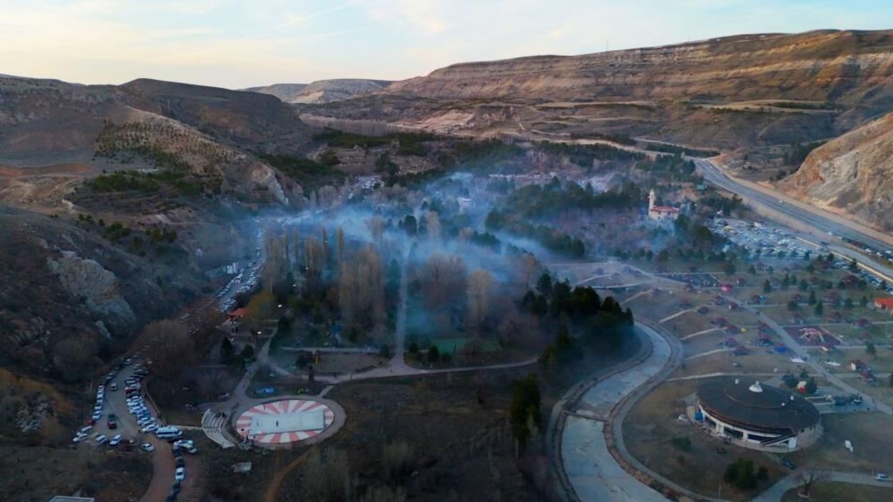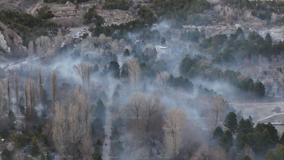 Sivas'ta bulunan Paşabahçe mesire alanında iftar hazırlığı yapan Sivaslıların iftara yakın aynı anda yaktıkları mangallardan çıkar yoğun duman, orman yangınlarını andıran görüntüler oluşturdu.