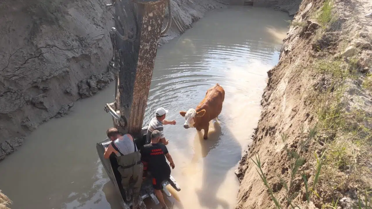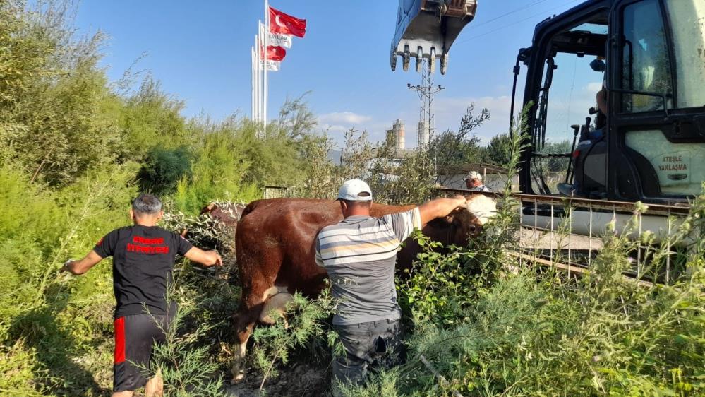 Tokat’ın Erbaa ilçesinde gölete düşen 3 inek, itfaiye ekiplerinin yaklaşık 1 saat süren çalışmasıyla kurtarıldı.