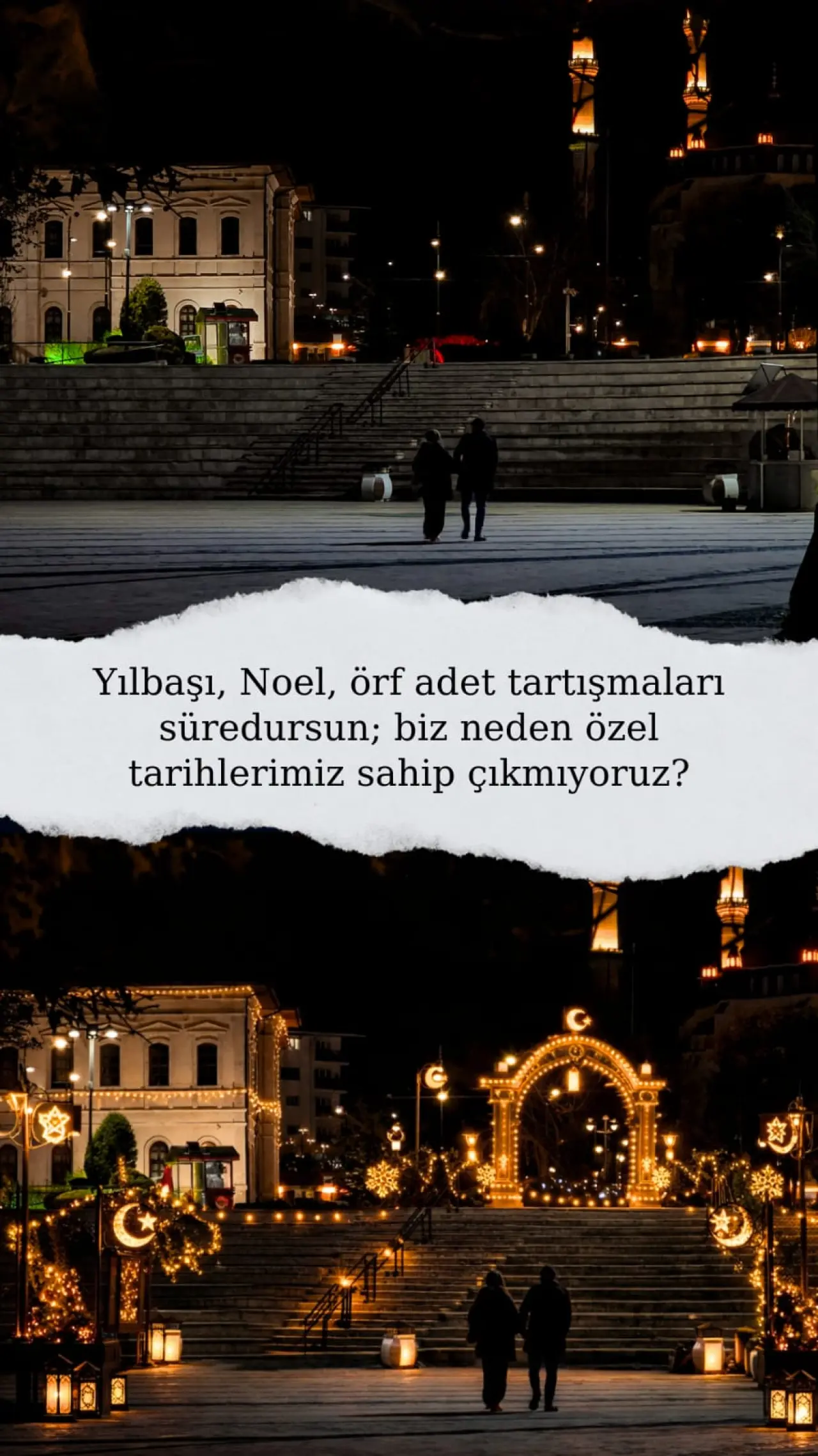 Yılbaşına sayılı günler kala Türkiye’nin pek çok noktasında olduğu gibi Sivas’ta da caddeler ve dükkanlar renkli ışıklarla donatılmaya başlandı. Ancak bu yıl şehirde farklı bir ses yükseliyor. Sivas’ın geleceğine ve vizyonuna dair önerilerde bulunan "SivasProjeler" sosyal medya hesabı, şehrin çehresini değiştirecek ve manevi değerlerimizi ön plana çıkaracak ezber bozan bir fikirle gündeme oturdu: Ramazan ayı için özel cadde ve meydan süslemeleri.