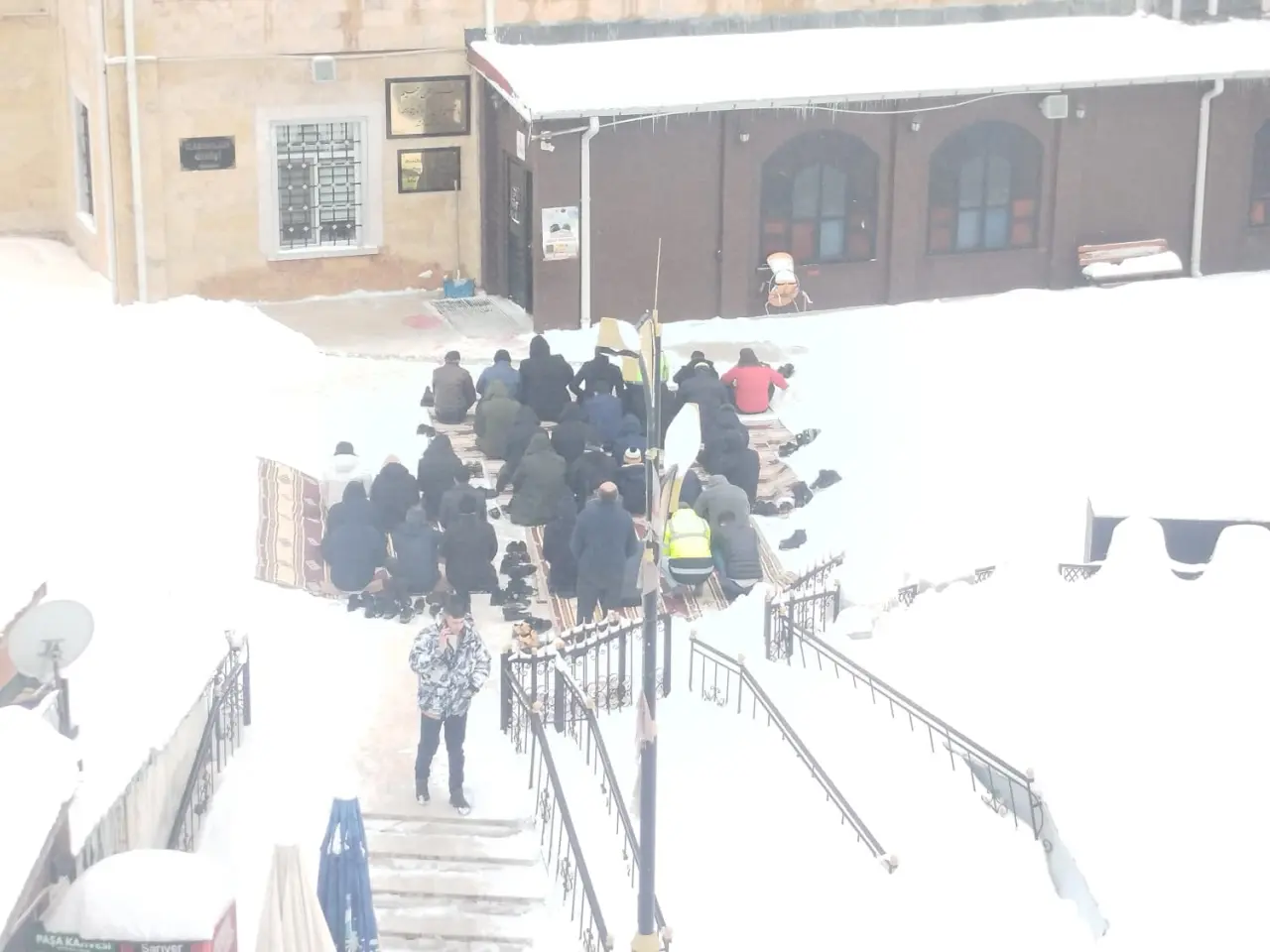 Hava sıcaklığının sıfırın altında 5 dereceye kadar düştüğü kentte, kar yağışı altında kılınan namaz anları objektiflere yansıdı. Üzerlerine yağan kar kütlelerine rağmen kıyama duran ve secdeye giden cemaat, ibadetlerini huzur içinde tamamladı. Namaz sonrası üzerlerindeki karları temizleyerek camiden ayrılan vatandaşlar, Sivas’ın meşhur kış şartlarında bile inancın engel tanımadığını herkese gösterdi. Beyaz esaret altındaki şehirde, Paşa Camii avlusundaki bu görüntüler günün en çok konuşulan kareleri arasına girdi.
