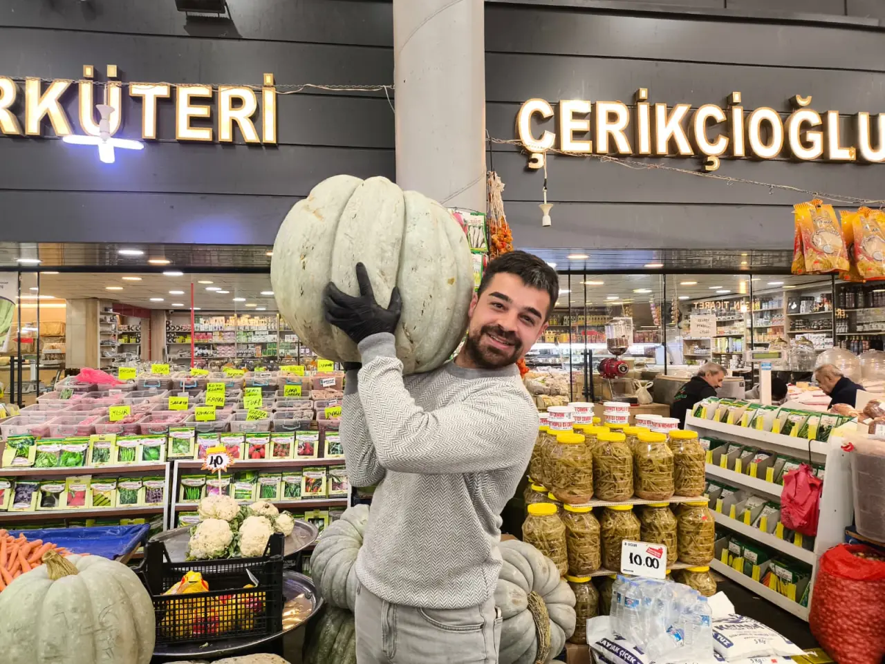 Yazlık sebze ve meyvelerin yerini kışlık ürünlere bırakmaya başladığı Sivas Sebze Hali'nde, bal kabağı sezonun en popüler ürünlerinden biri olarak öne çıkıyor. Özellikle bu devasa kabaklar, hem görsel bir şölen sunması hem de Sivaslıların bal kabağına olan düşkünlüğü nedeniyle tezgahların adeta yıldızı olmuş durumda. Alışveriş yapanlar, bu dev kabakların lezzetini ve bereketini merak ediyor.