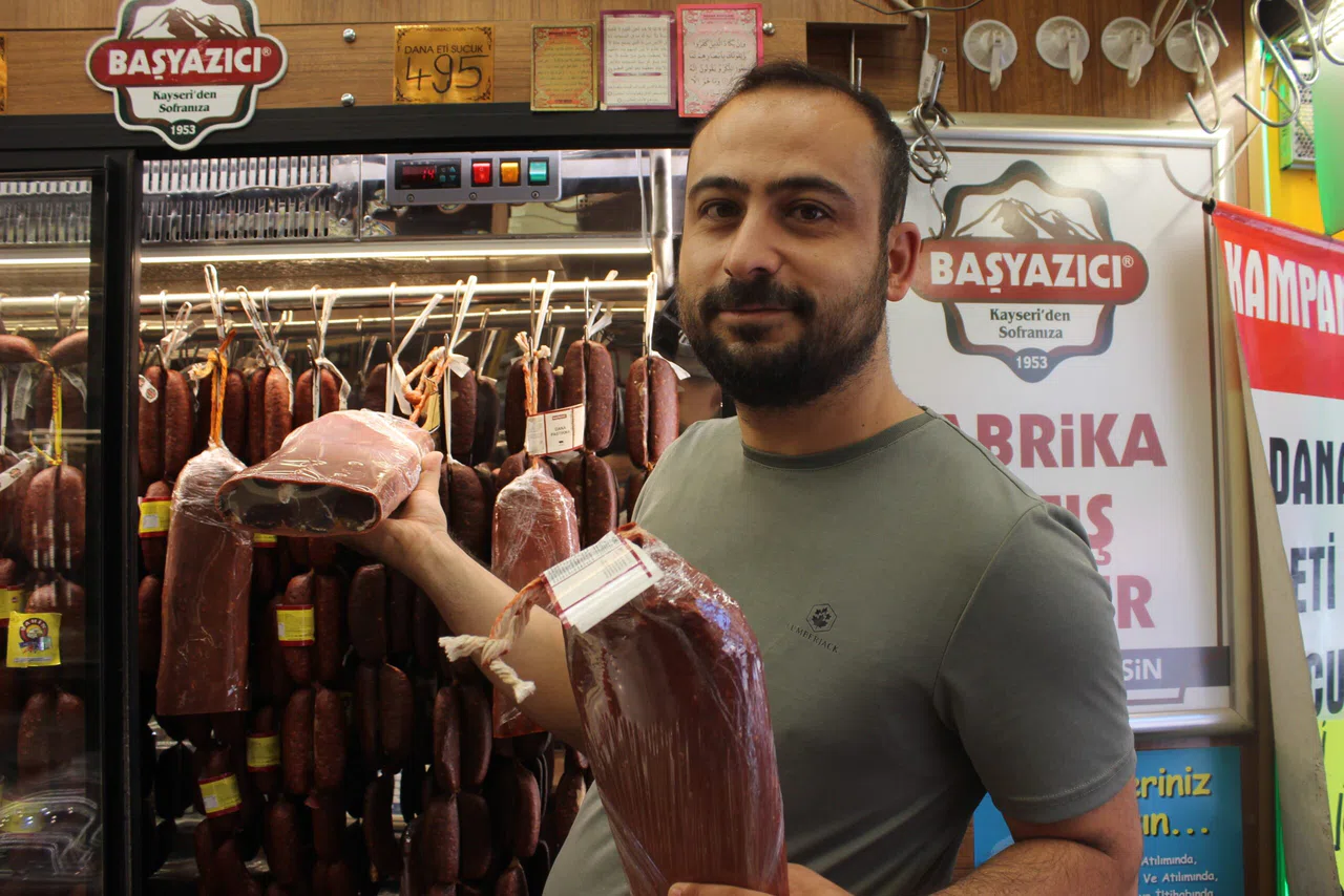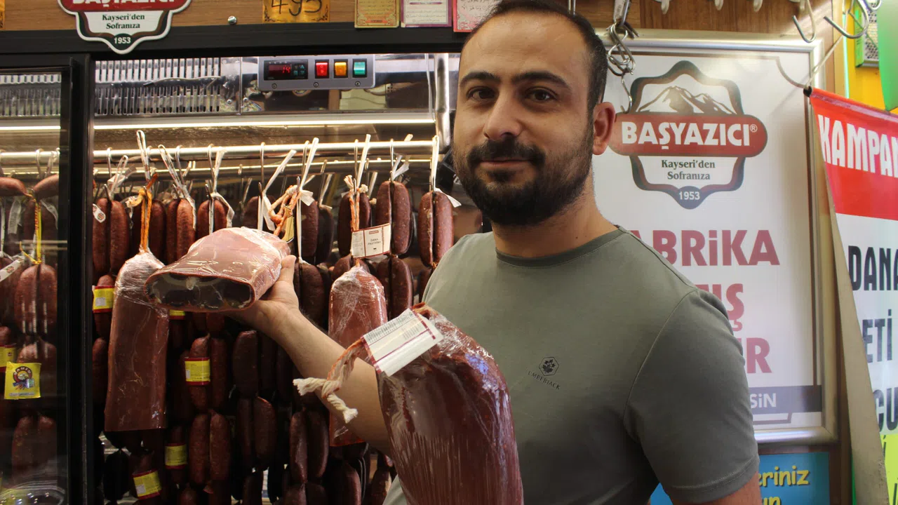 Gurbetçi vatandaşların dilim fiyatı 6,5 TL olan pastırmaya, sucuktan daha çok ilgi gösterdiklerini söyleyen pastırmacı Yasin Güzel, “Artık yaz geldi. Bizim de gurbetçi sezonumuz açıldı. Tabii ki işlerde biraz artış ve yoğunluk başladı. Tempolu bir şekilde çalışmaya devam ediyoruz. Şu anda 40 günümüz var. Yeni gelen gurbetçilerimiz var. Emekli olan gurbetçilerimizde yeni yeni gitmeye başladılar. Bizim için tam sezon açıldı diyebiliriz. Genelde pastırmayı daha çok satıyoruz. Çünkü gelen gurbetçilerimiz pastırmamıza daha çok rağbet gösteriyor. Onların geldikleri ülkede de sucuk yapımı var. Gurbetçi vatandaşlarımız oradaki sucuklara daha çok ilgi gösteriyor. Şu anda pastırma satışlarımız daha fazla. Fiyatlarımız normal olarak artış gösterdi. Etin kilogram fiyatının artmasıyla birlikte pastırma ve sucuk fiyatlarımızda da artış oldu. Ancak geçen sene ile oranladığımız zaman çok fahiş bir artış yok. Pastırma ve sucuklarımız alınacak durumda. Gurbetçi vatandaşlarımız o kadar yolculuk yapıyor. Evlerine gittiklerinde dolaba koymalarını öneriyoruz. Biz burada yolculuk zaten vakum yapıyoruz. Bizim yaptığımız vakumdan çıkartıp buzluğa atarlarsa daha uzun süre orada saklayabilirler” diye konuştu.