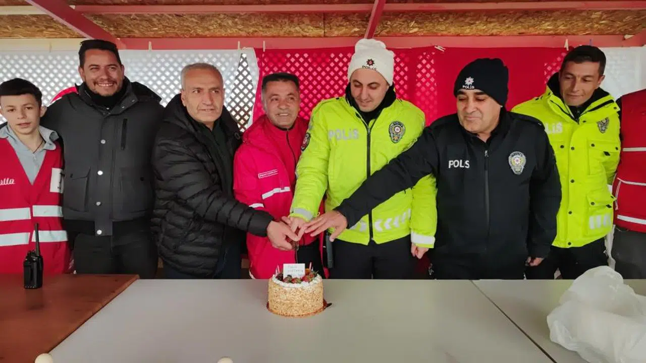 Kazaya müdahale etmeyi planlayan ekipler, ihbar edilen olay yerine vardıklarında ise sürprizle karşılaştı. Polisleri meşale ve Türk bayrağı karşılayan gönüllüler daha sonrasında polislere pasta ikram etti. Emniyet teşkilatının 180. yıl dönümünü kutladıkları polisler ise sürpriz nedeniyle teşekkür etti.