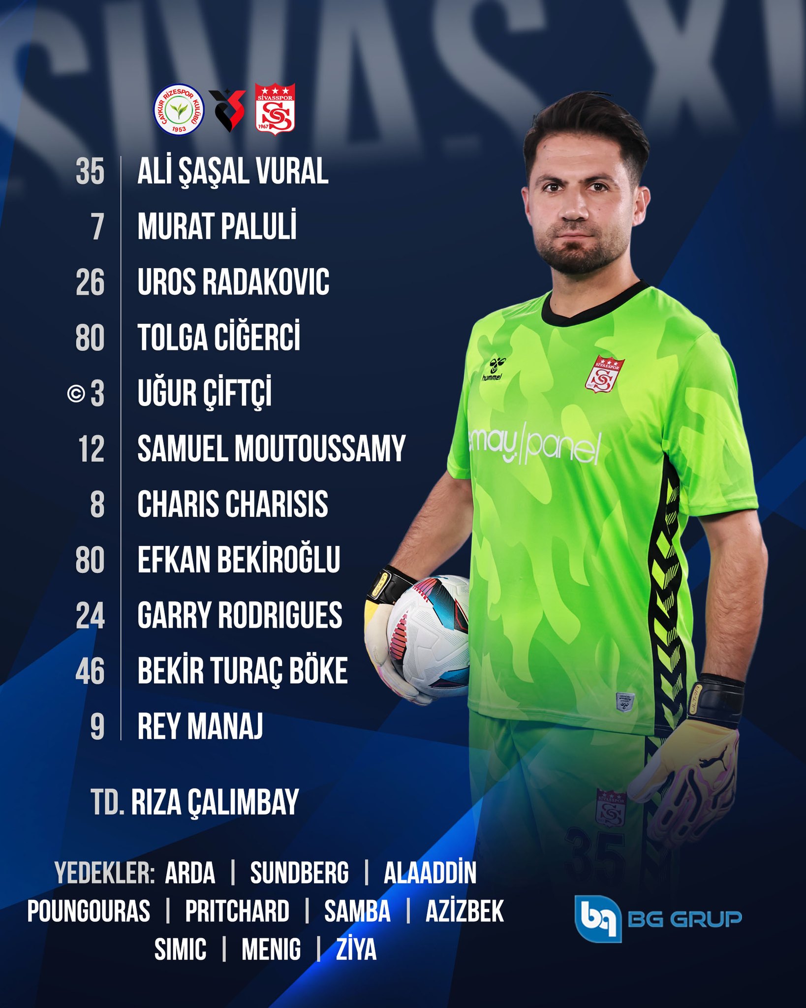Ali Şaşal Vural, Murat Paluli, Uros Radakovic, Tolga Ciğerci, Uğur Çiftçi, Samuel Moutoussamy, Charis Charisis, Efkan Bekiroğlu, Garry Rodrigues, Bekir Turaç Böke, Rey Manaj ilk 11'i ile sahaya çıkan Sivasspor'da ilk yarıda gol sesi çıkmadı.
