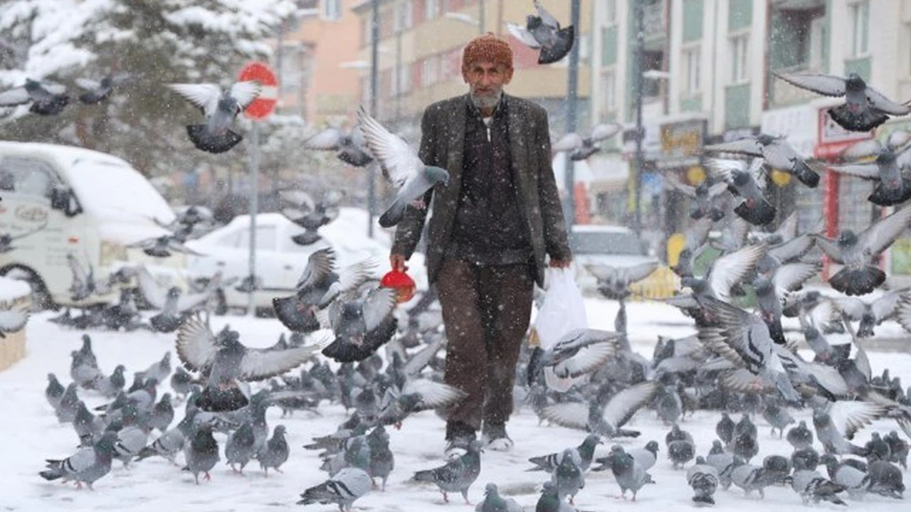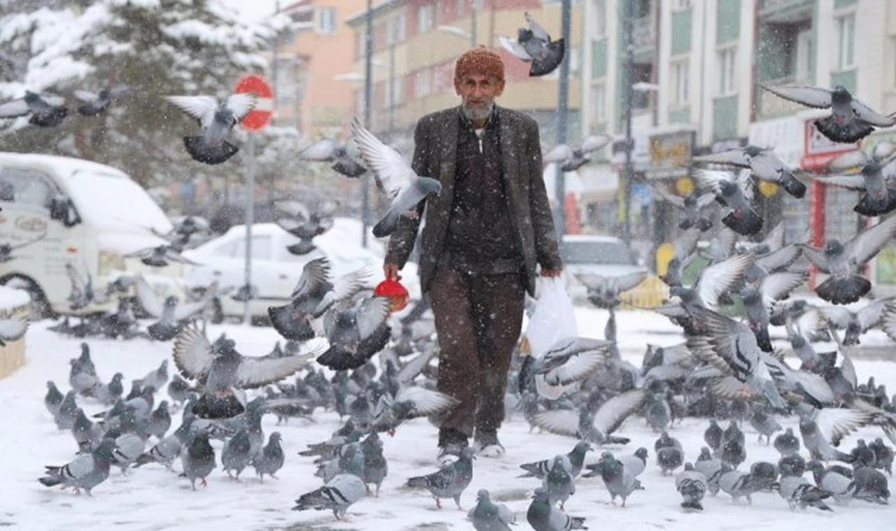 Sivas"ta ikamet eden Ali Biçicioğlu, 20 yıl önce gördüğü bir rüya üzerine her gün gönüllü olarak kuşları yemliyor.