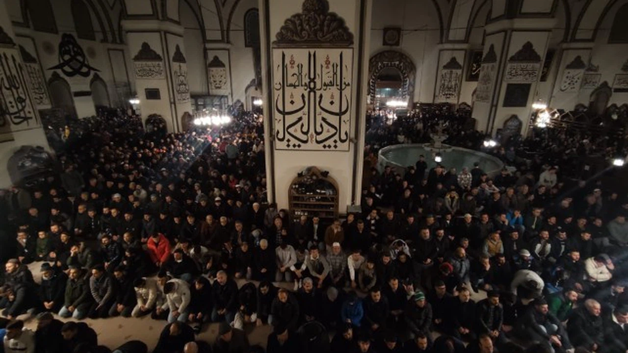Bursa'da yılın ilk sabah namazında binlerce kişi tarihi Ulucami'ye ve Muradiye Camii'ne akın etti.