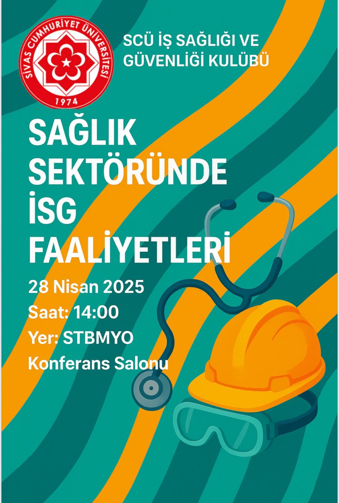 Sivas Cumhuriyet Üniversitesi (SCÜ), önemli bir etkinliğe daha ev sahipliği yapmaya hazırlanıyor. Üniversitenin aktif öğrenci topluluklarından İş Sağlığı ve Güvenliği (İSG) Kulübü tarafından düzenlenen "Sağlık Sektöründe İSG Faaliyetleri" başlıklı etkinlik, bugün (28 Nisan) saat 14:00'te başlayacak.