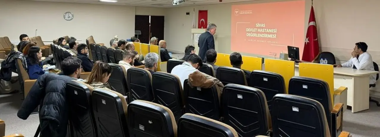 Sivas Devlet Hastanesi konferans salonunda, hekimlerin yoğun katılımıyla kapsamlı bir değerlendirme toplantısı gerçekleştirildi. Toplantıya başhekim Uzm. Dr. Hüseyin Gökgöz önderlik etti ve sunum eşliğinde hastanenin güncel durumu, sağlık hizmetleri performansı ile gelecek planlamalarını paylaştı.
