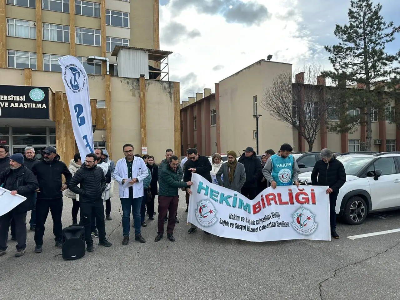 Sivas Cumhuriyet Üniversitesi Başhekimliği önünde gerçekleştirilen basın açıklamasına Sivas Aile Hekimleri Derneği, Sivas-Erzincan Tabip Odası, Hekim Birliği Sendikası Sivas Şubesi ve SES Sivas Şubesi katıldı. Açıklamada, aile hekimliği sistemindeki performans odaklı uygulamaların sürdürülemez hale geldiği vurgulandı.