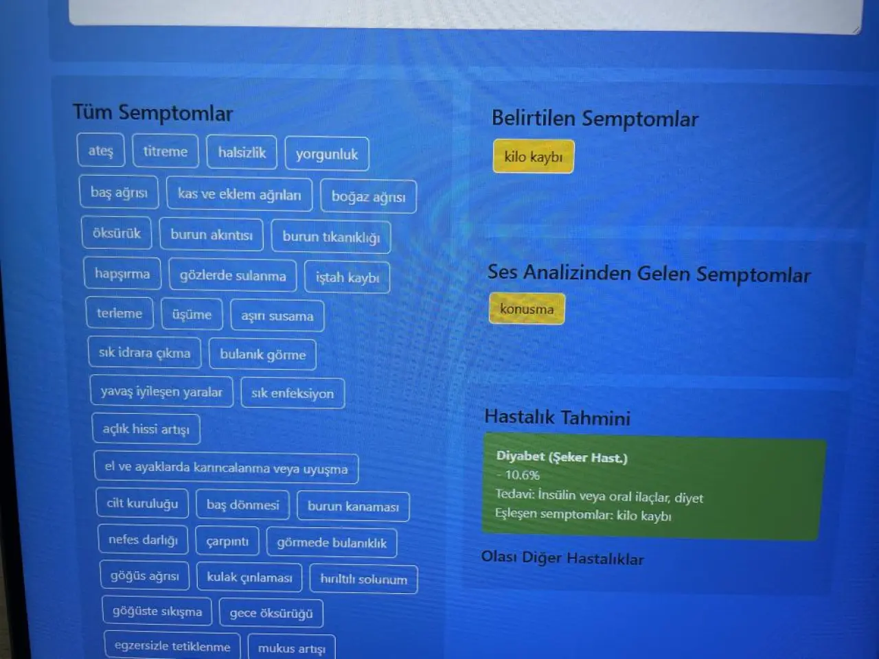 Fesih Sönmez, bu modeli çok kısa sürede geliştirdiğini vurgularken, sağlıkta ön teşhisin hayati öneme sahip olduğunu söylüyor. “Bazen hastaneye gittiğinizde, saatlerce beklemeniz gerekebiliyor. Bu sistem, sadece şikayetlerinizi sesli ifade ederek olası hastalıkları hızlı şekilde analiz edebiliyor. Yapay zekâ, artık sadece bir yardımcı değil, sağlığın yeni rehberi olacak,” diyerek sistemin önemine dikkat çekiyor.