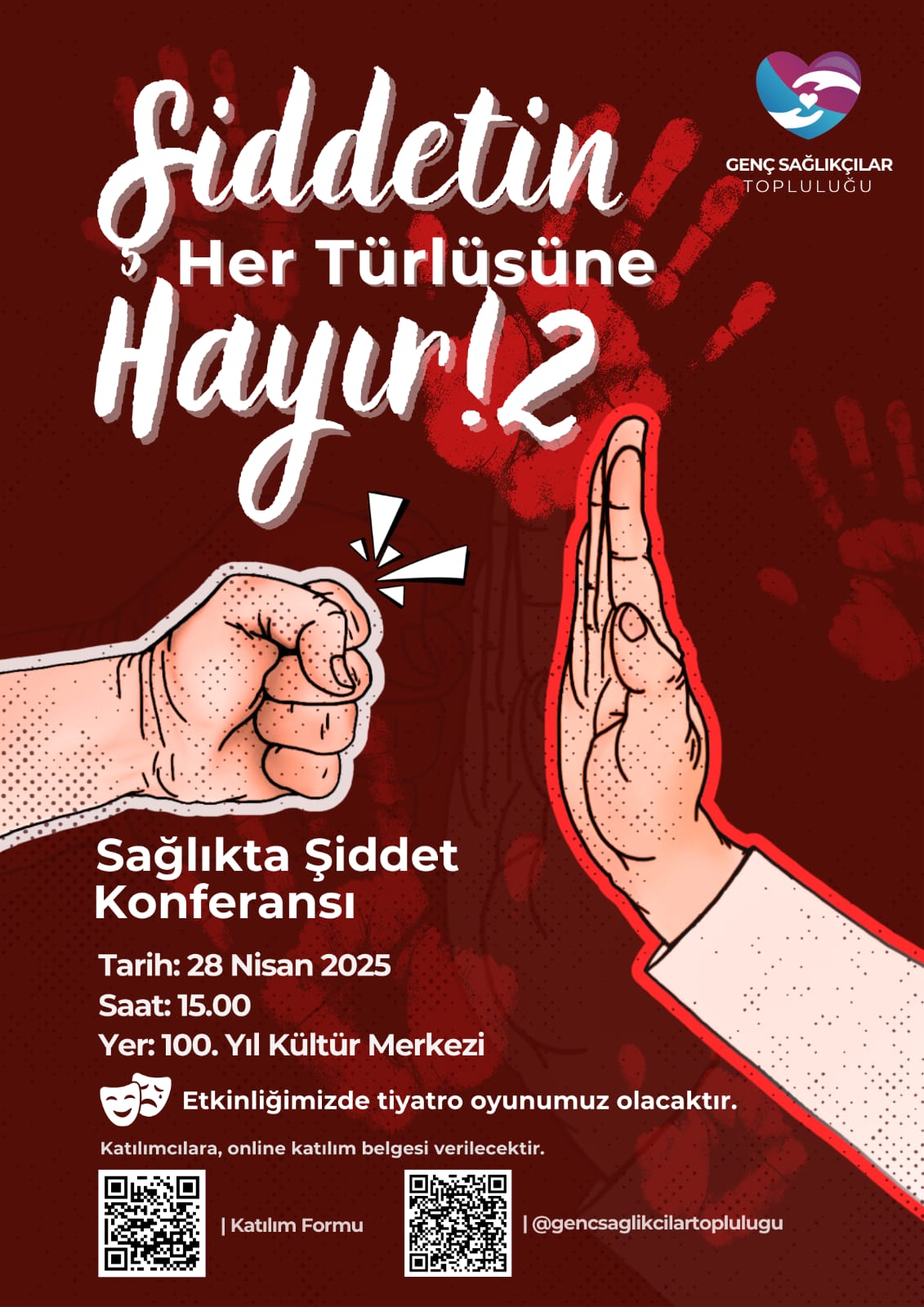Konferansta, sağlık çalışanlarının karşılaştığı şiddet olayları ele alınacak ve bu konuda farkındalık oluşturulması hedefleniyor. Etkinlikte tiyatro oyunu da sahnelenecek, böylece katılımcılar hem bilgilendirilecek hem de sanatsal bir deneyim yaşayacak. Katılım için online kayıt belgesi alınması gerekiyor. Kayıt formuna ve detaylı bilgiye Genç Sağlıkçılar Topluluğu’nun resmi sosyal medya hesabı @gencSaglikcilarToplulugu üzerinden ulaşabilirsiniz.