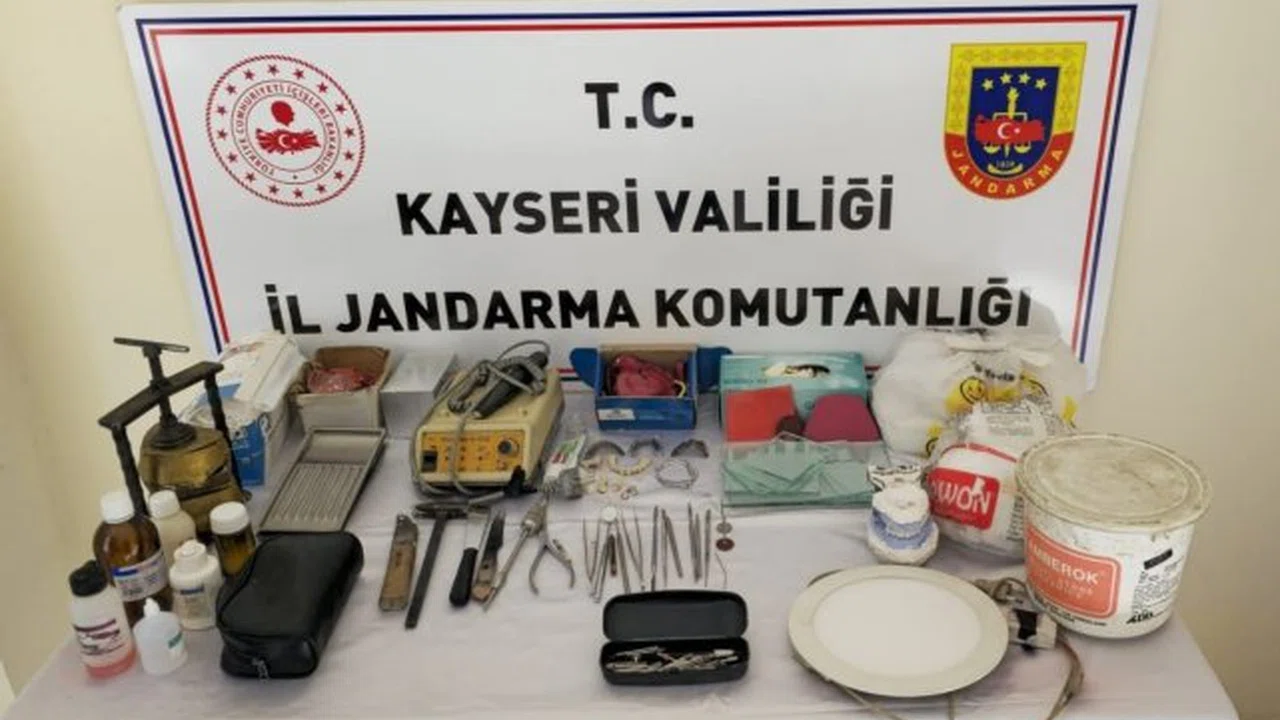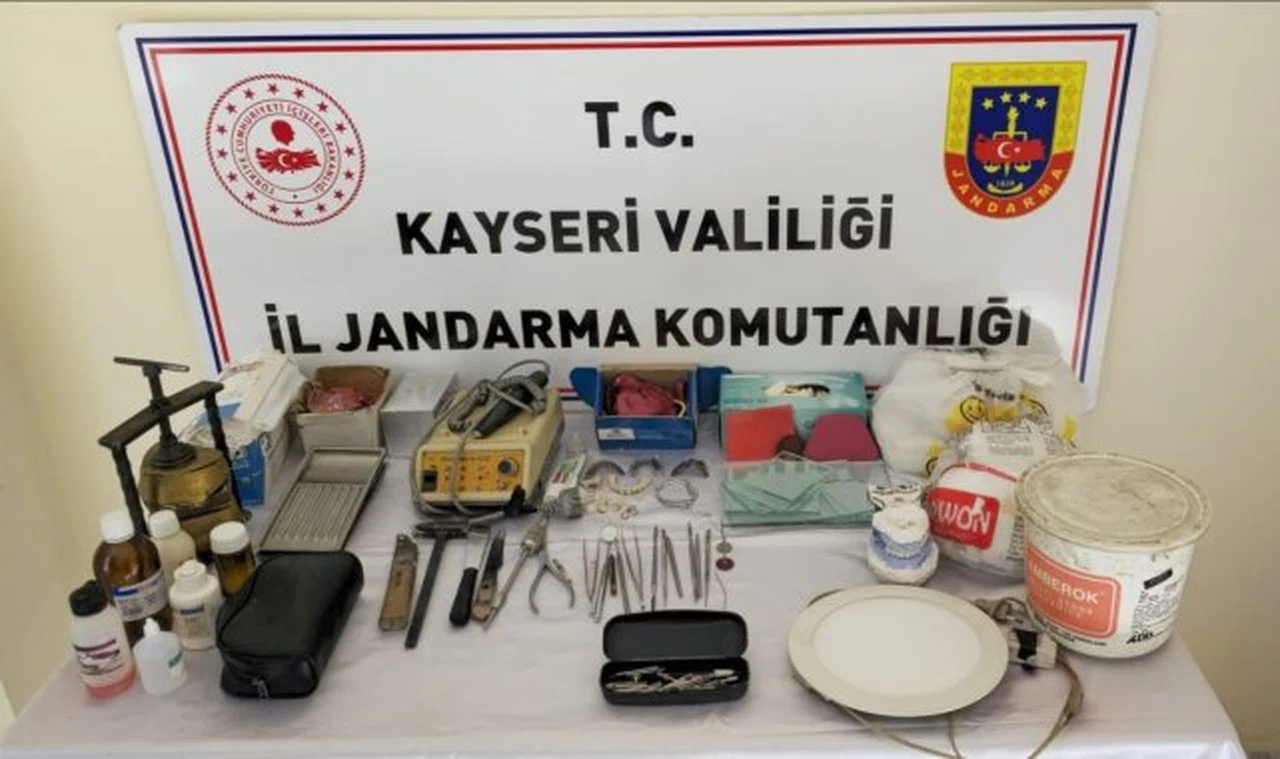 Kayseri'de jandarma ekipleri tarafından yapılan çalışmalarda, Melikgazi ilçesine bağlı Ağırnas Mahallesi'nde T.P.'nin yetkili mercilerden gerekli izin alınmadan diş çekim ve tedavisi yaptığı bilgisine ulaşıldı. Jandarma ve Kayseri İl Sağlık Müdürlüğü ekipleri tarafından yapılan çalışmalarda diş protez tamir ve imalatı amacıyla kullanılan toplam 42 adet muhtelif malzeme bulunurken, T.P.'nin de sağlıkla ilgili diploması ve izni bulunmadığı tespit edildi. Bulunan materyallere ekipler tarafından el konulurken, T.P. hakkında da işlem başlatıldı.
