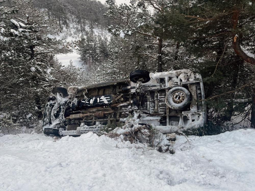 Yozgat'ın Akdağmadeni ilçesi Yukarıçulhalı köyü yakınlarında şarampole devrilen minibüsteki 2 öğretmen yaralandı.