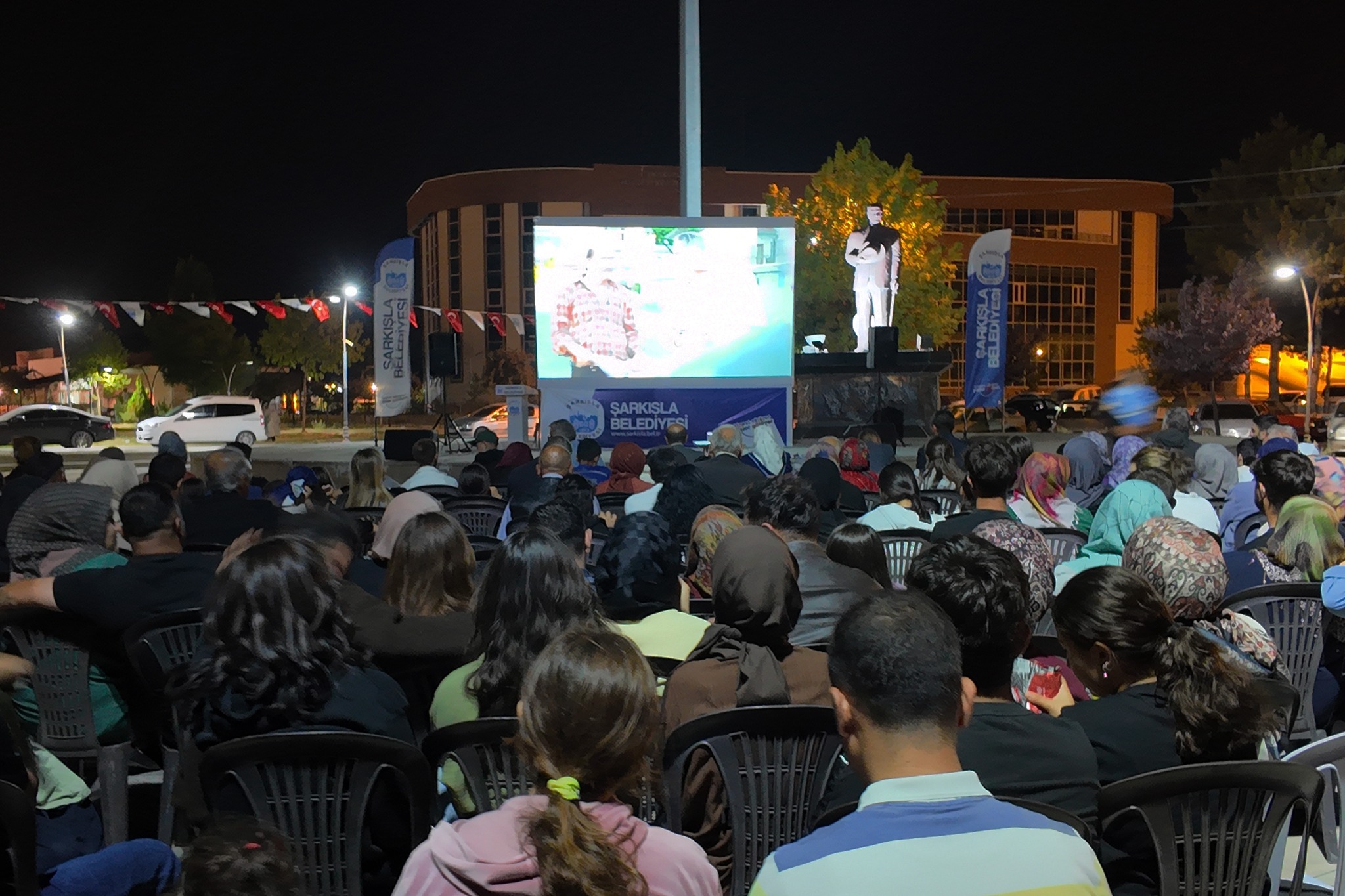 Sivas’ın Şarkışla ilçesinde yaz akşamına farklı bir renk katan açık hava sinema etkinliği, ilçe halkını Gülsu Şehitler Meydanı’nda buluşturdu. Şarkışla Belediyesi tarafından organize edilen programa yoğun katılım oldu.