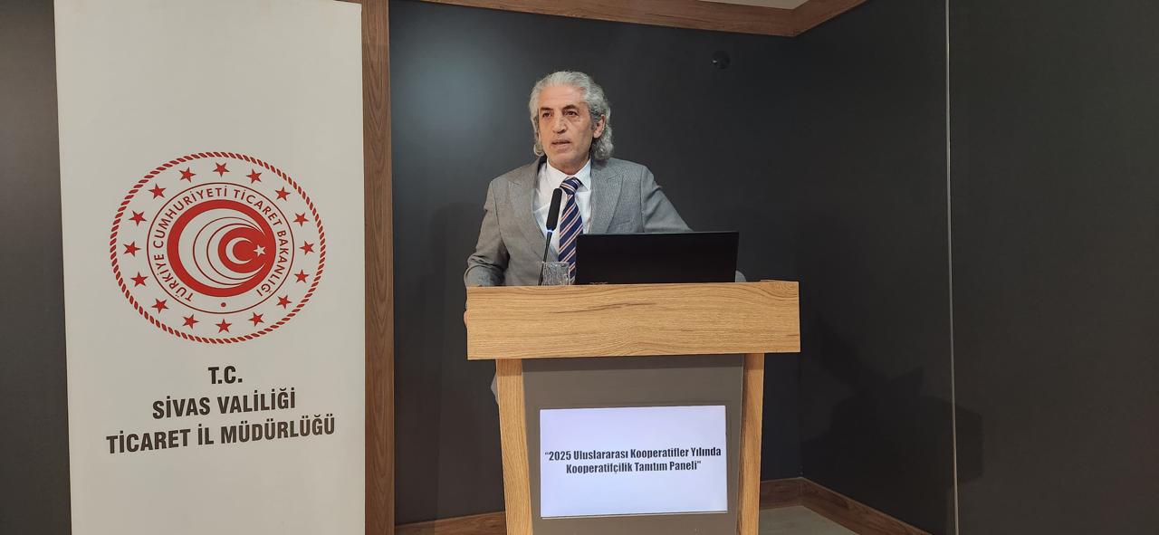 Çalışma Ekonomisi Öğrenci Topluluğu ile Sivas Ticaret İl Müdürlüğü iş birliğinde, 2025 Uluslararası Kooperatifler Yılı kapsamında “Kooperatifçilik Tanıtım Paneli” düzenlendi. Sivas Cumhuriyet Üniversitesi İktisadi ve İdari Bilimler Fakültesi Prof. Dr. Murat Sarıkaya Konferans Salonu’nda gerçekleştirilen etkinliğe, Fakülte Dekanı Prof. Dr. Gülay Ercins, Dekan Yardımcısı Dr. Öğr. Üyesi Engin Dursun, akademisyenler, idari personel ve çok sayıda öğrenci katıldı.
