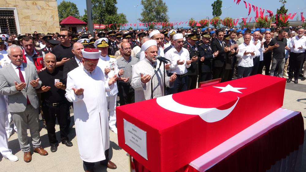 Cenaze törenine Giresun Valisi Mehmet Fatih Serdengeçti, AK Parti Giresun Milletvekilleri Ali Temür ve Nazım Elmas’ın yanı sıra çok sayıda kurum yetkilisi, askeri erkan ve vatandaşlar katıldı. İl Müftüsü Selçuk Kılıçbay’ın kıldırdığı cenaze namazının ardından, şehidin Türk bayrağına sarılı naaşı askerlerin omuzlarında top arabasına alındı.