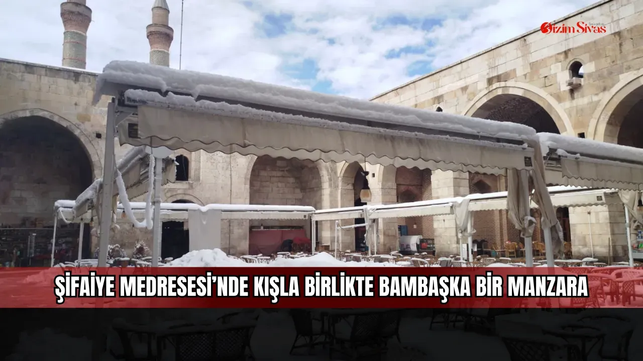 Hava sıcaklıklarının düşmesiyle birlikte yağan kar, Şifaiye Medresesi’nin taş duvarlarını ve avlusunu beyaz bir örtüyle kapladı. Bu görüntü, medreseye hüzünlü ama bir o kadar da etkileyici bir güzellik kazandırdı. Revaklarda yankılanan insan seslerinin yerini rüzgârın uğultusu alırken, tarihi yapının yüzlerce yıllık geçmişi bu sessizlikte daha güçlü hissediliyor. Kış aylarında ziyaretçi sayısının azalması, medreseyi görmek isteyenler için daha sakin ve dingin bir deneyim sunuyor.