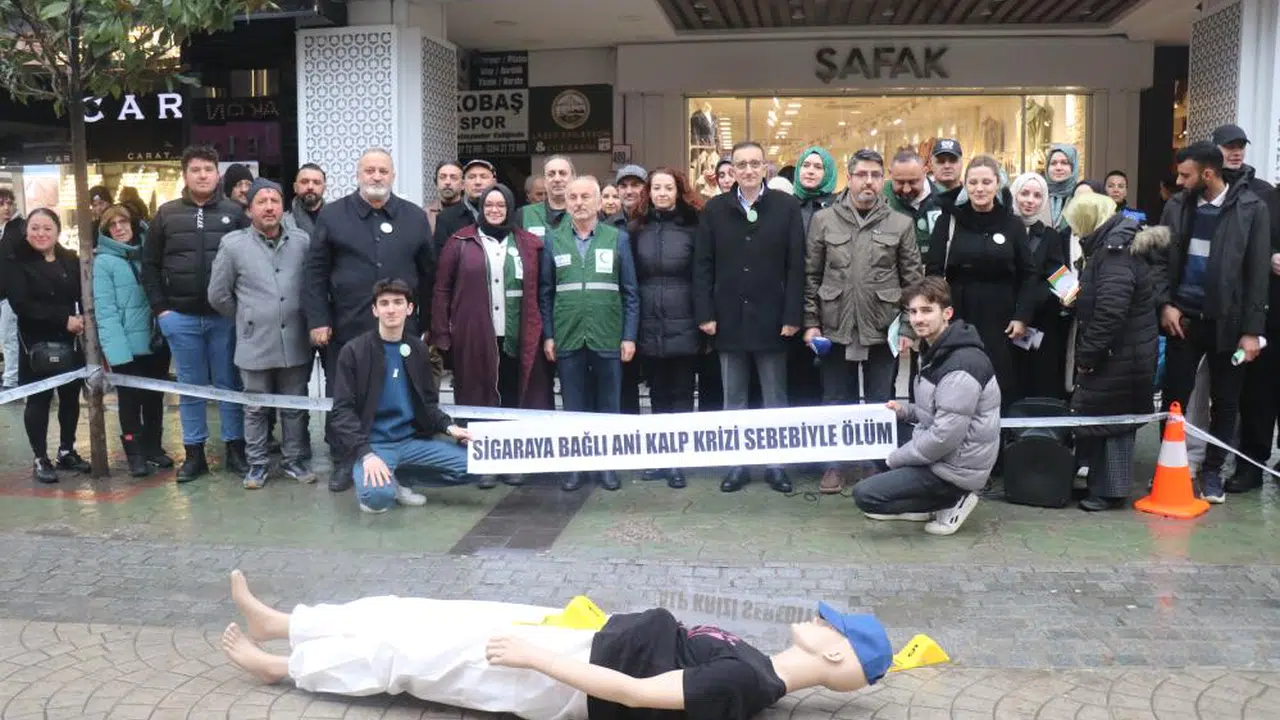 Sakarya'da 9 Şubat Dünya Sigarayı Bırakma Günü kapsamında dikkat çeken bir tatbikat gerçekleştirildi. Kentin işlek noktasına yerleştirilen cansız mankenin sigaraya bağlı kalp krizi geçirdiği senaryo üzerinden sağlık ekipleri müdahale gerçekleştirdi. Tatbikat, vatandaşlar tarafından meraklı gözlerle izlendi.