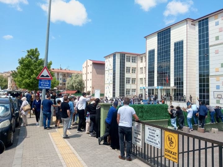 Okul bahçesine girişleri yasak olan onlarca veli, Selçuk Ortaokulu'nun çevresindeki kaldırımları ve duvar kenarlarını doldurmuş durumda. Kimi veli elinde Kur'an-ı Kerim ile evladı için dua ederken, kimisi de diğer velilerle sessiz ve endişeli bir sohbete dalmış halde saniyeleri sayıyor. Gözleri okul kapısında, kulakları ise sınavın bitiş zilinde olan ailelerin bu sabırlı ve umut dolu bekleyişi, LGS gününün en dokunaklı anlarını oluşturuyor.