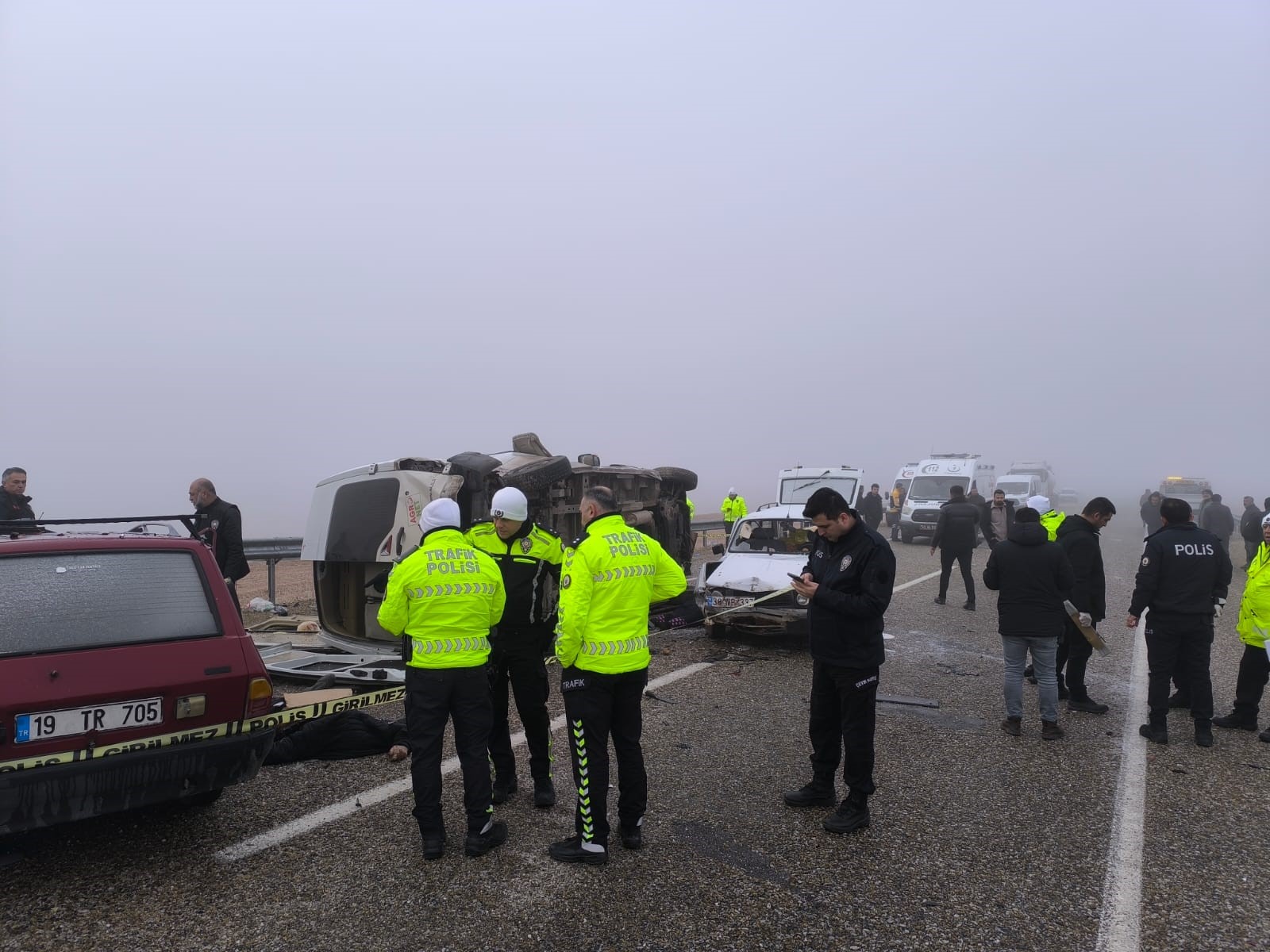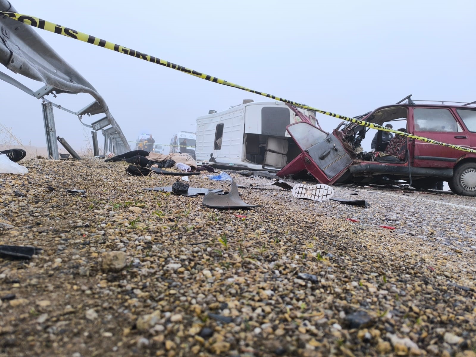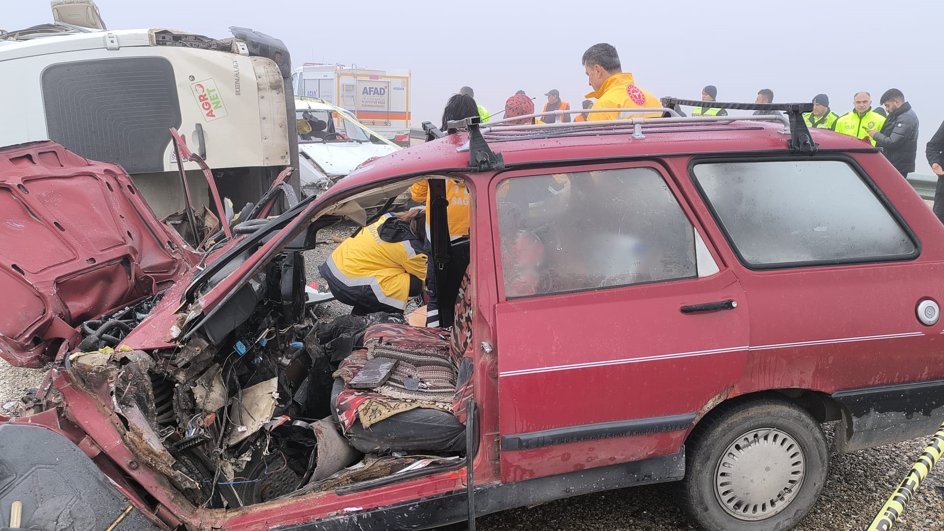 Edinilen bilgiye göre, Savcılı yolu üzerinde aşırı sis nedeniyle domates serasına giden 40 ABF 071 plakalı servis aracı ile 19 TR 705 plakalı ve 38 NP 337 plakalı araç çarpıştı.