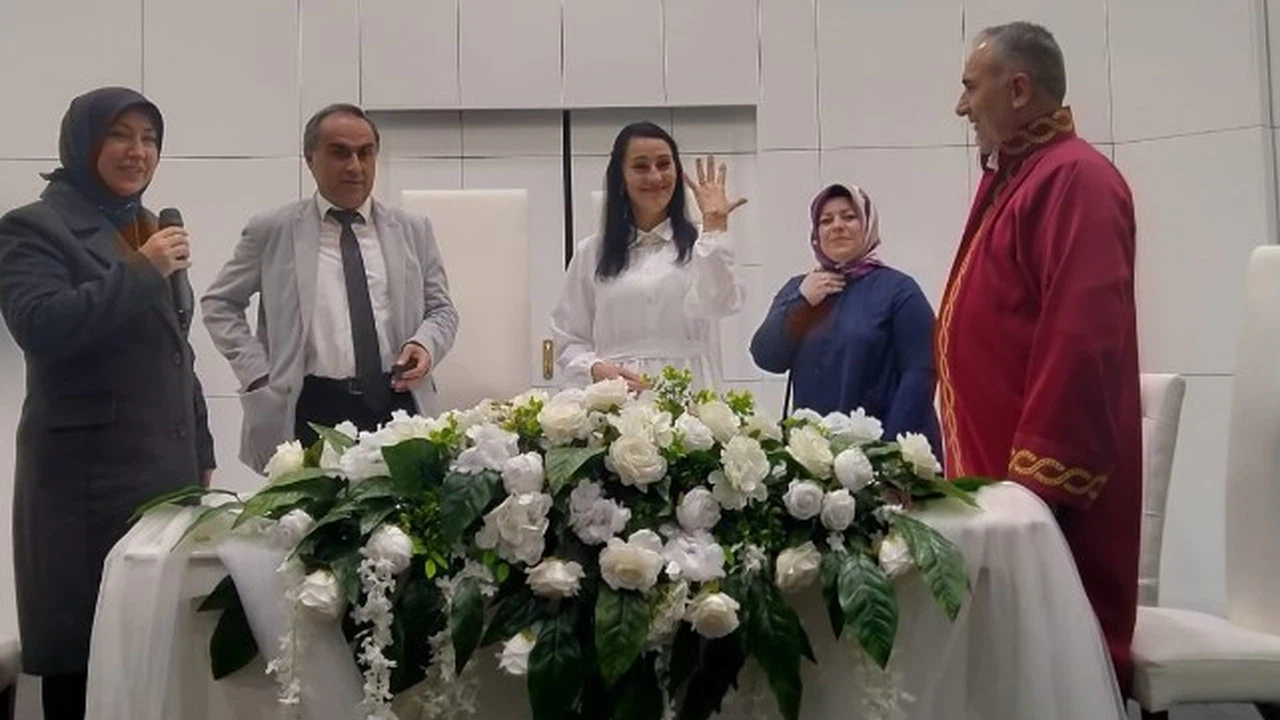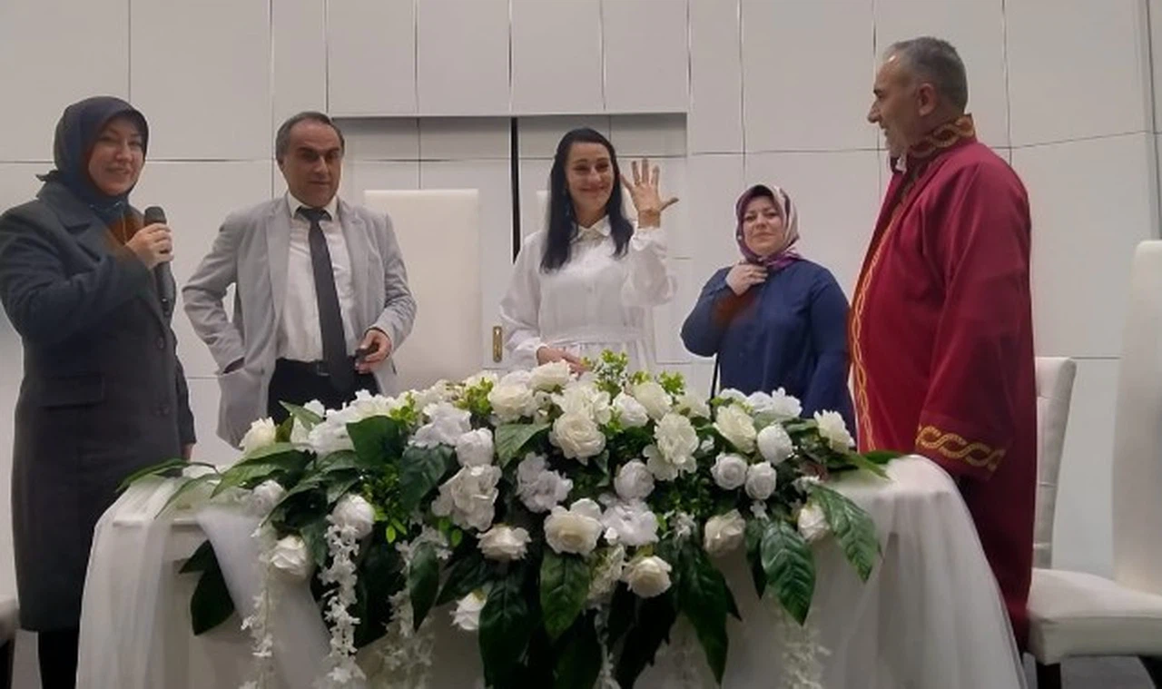 Nikah törenine şahit olarak Sivas Milletvekili Rukiye Toy katılırken, Milletvekili Toy çiftlere bir ömür boyu mutluluklar dileyerek evlilik cüzdanını gelin Natallıa Lunkevıch'a teslim etti.